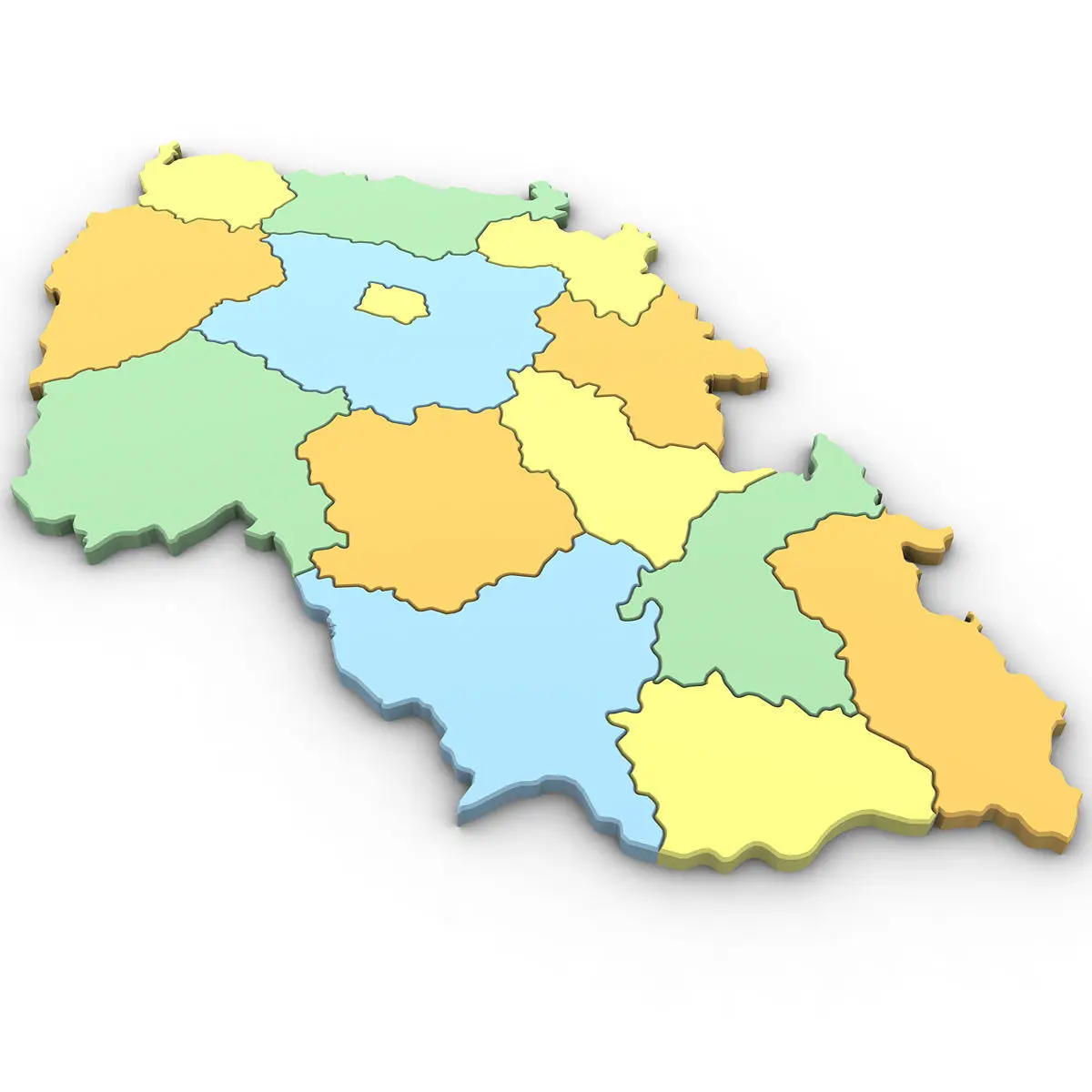 High poly 3d model of the map of the Czech Republic. Includes all the regions of the Czech Republic.