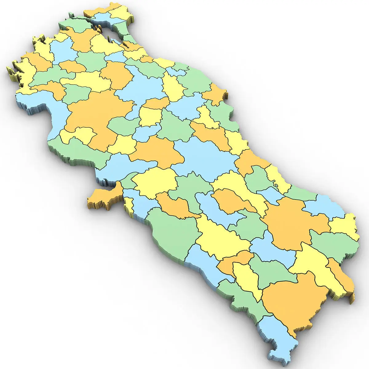 High poly 3d model of the map of Turkey. Includes all the regions of Turkey.