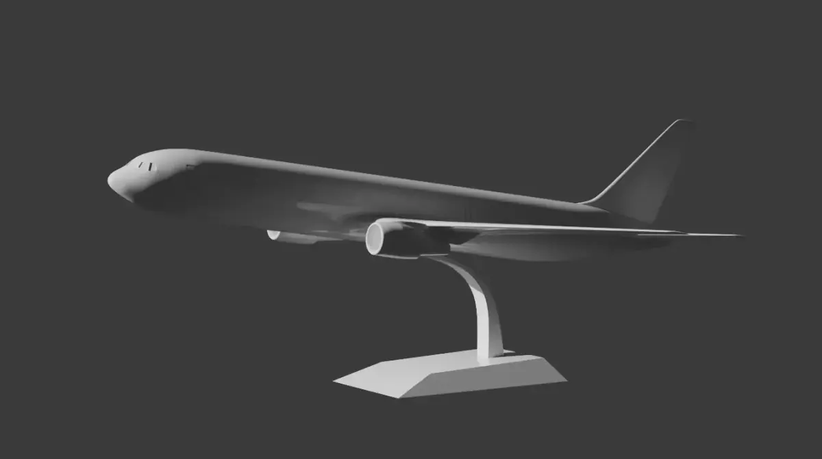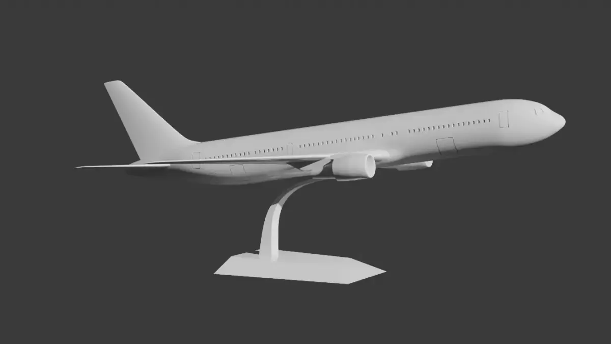 This is a 3D printable model of a Boeing 767-300 without Sharklets. It includes a display stand. I recommend using acrylic paint and then applying a coat of varnish once finished.