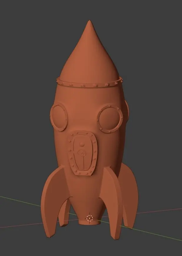 Ready for print rocket in cartoon style. A good model to test 3d printer. Have small details like door and rivets. A model is a single monolith object.