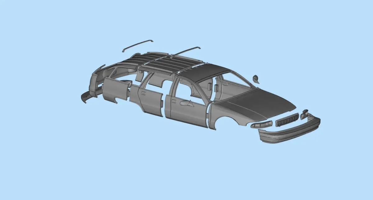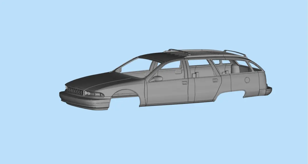 3D print RC car body Chevrolet Caprice Station Wagon. Model ready to print to 3D printer. All parts are separate objects. Body can be fitted to existing chassis.