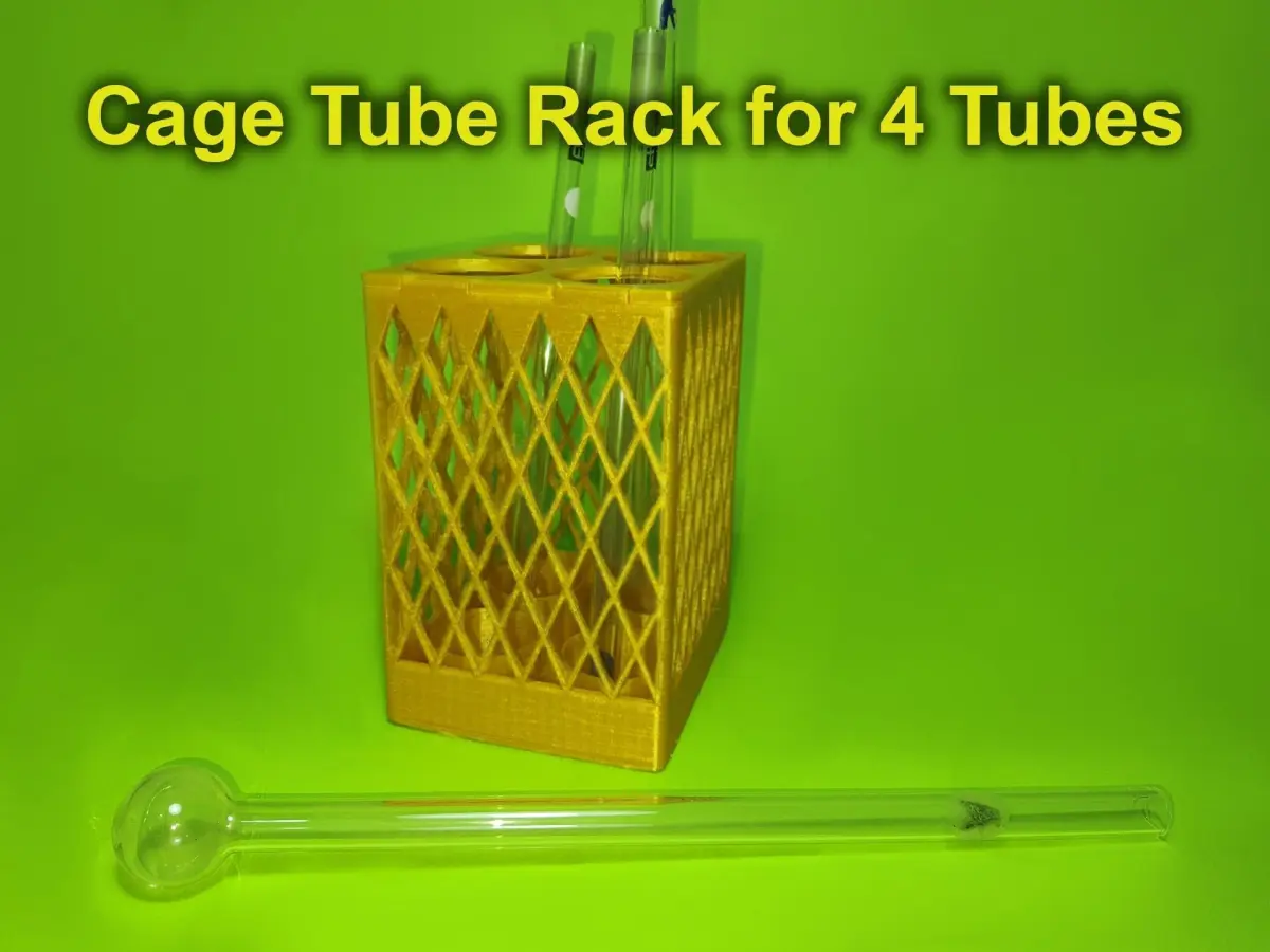 - Cage tube rack stand models have spacious design to put tubes having regular use and/or spherical bottoms as it can be seen in the photos. It can also be used with straight test tubes. Tubes stand with an inclined orientation in the designs. There are two parts as it can be seen in the photos that can fit into each other. There are three sizes with capacities of 4, 8 and 12 tubes. Default diameter is 40 mm but it can be adjusted with scaling of the model according to your needs.