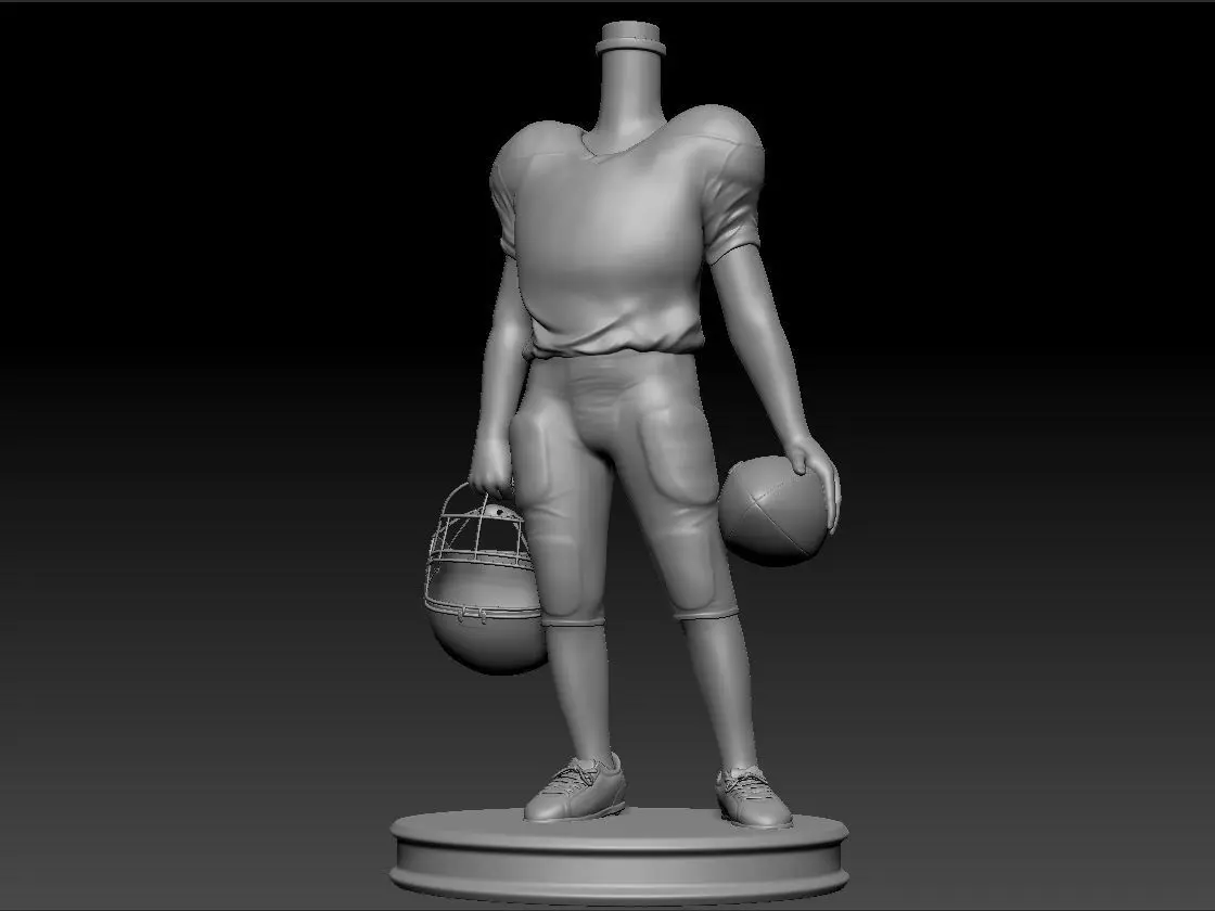 A 3D model of a boy/man in american football outfit with football ball and helmet for 3D printing created in zbrush 4R6. This 3D model its created and suitable to be used with a bubble head. Size is of 3x3x5.8cm. Height is 5.8 cm. Files included: stl, obj and ztl. Renders are taken in Zbrush with default settings.
