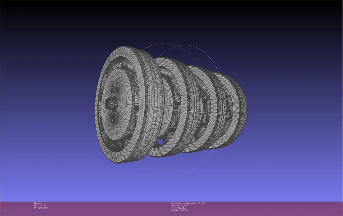 A 3D-printable assembly for an axial blower that can be used for experimental/emergency ventilators and other applicationsit produces a pressure of about 200mmH2O at 10000rpm but the exact presure should be measured/tested for your specific printing process and motor usedit can be equipped with small simple dc motors and the pressure can be limited by rpm (pressure being approximately proportional to rpm squared)