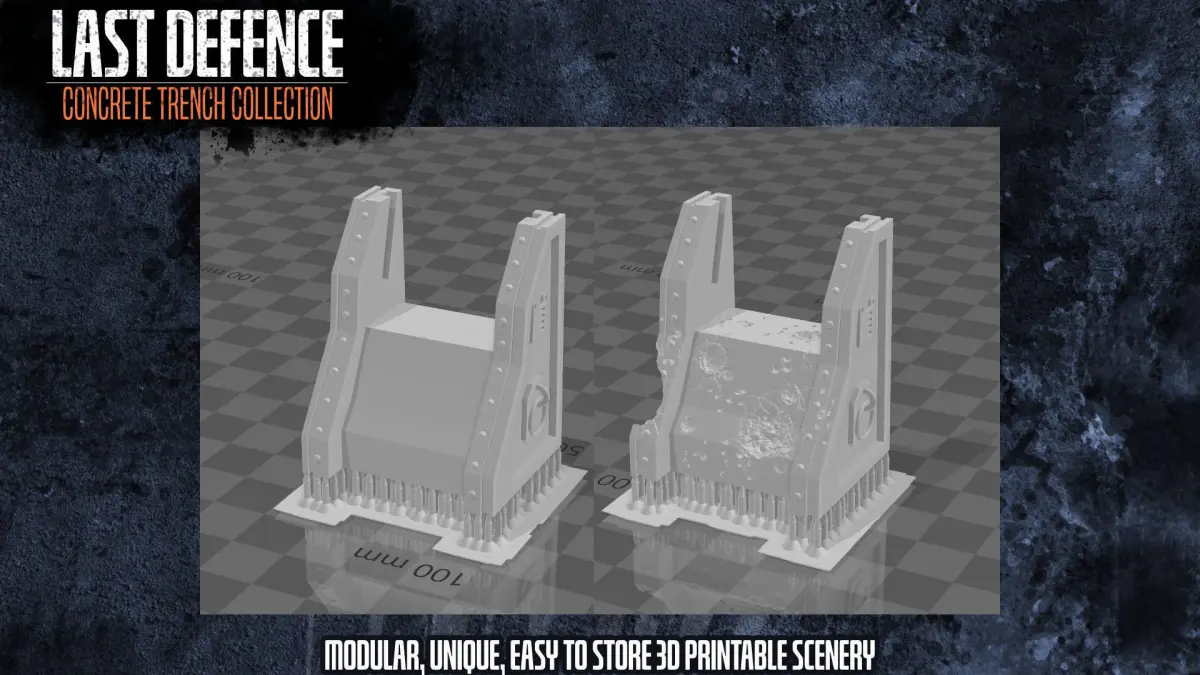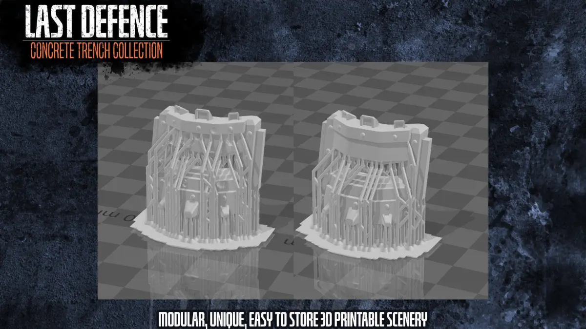 Protect your armies from the onslaught with compact/modular, pre-supported and un-supported. 28-32mm terrain. 3D printable as resin or FDM for tabletop wargaming.