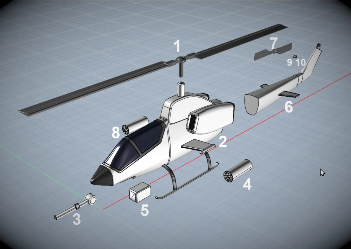 It is simplified version of real Cobra helicopter.Rotors made to spin I left some gaps betwwen objects.