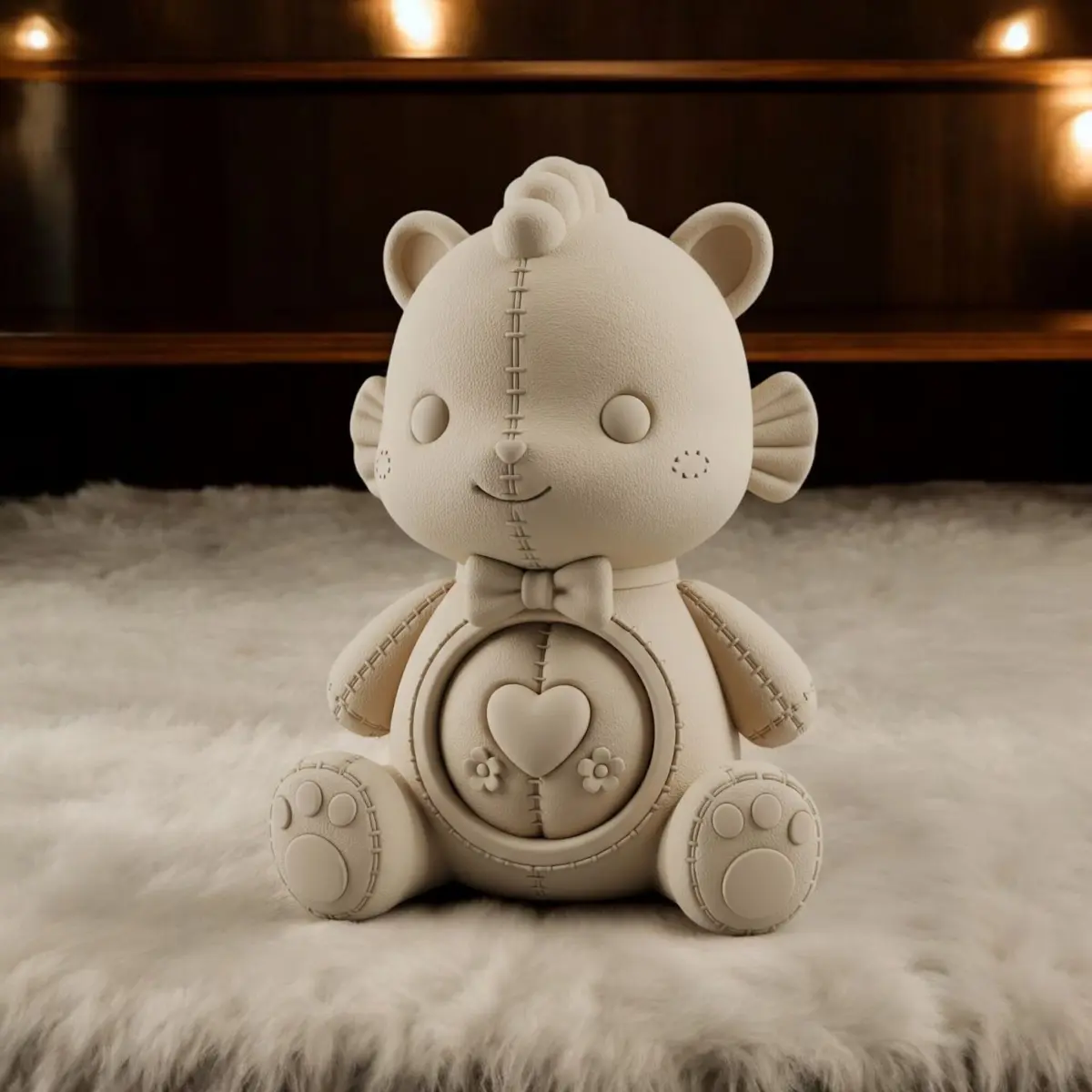 With detailed elements such as a raised heart on its chest, stylized seam lines, a soft plush-like texture, and a charming bow around its neck, this bear radiates both affection and creativity. The fish-inspired fins make the character feel like it just swam out of a magical underwater world.