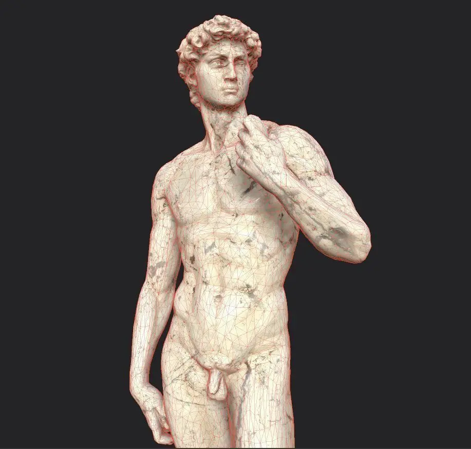 Realistic reproduction of a David statue by Michelangelo from Louvre Museum, high quality, and print-ready. Available formats: obj; stl; ztl