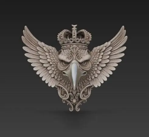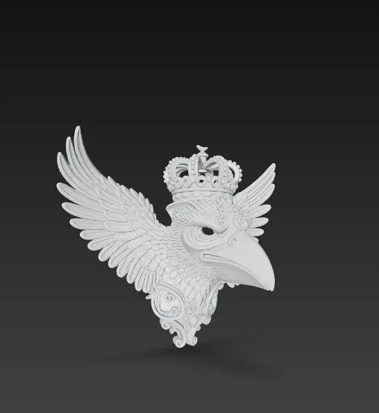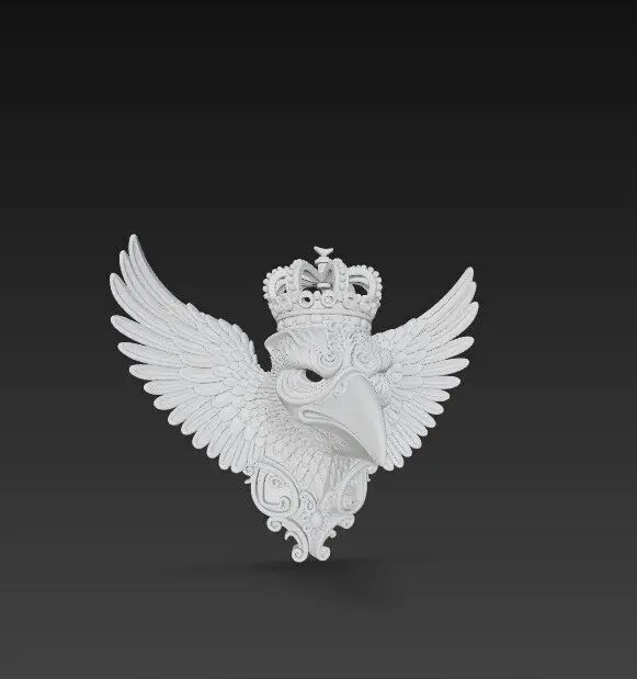 Description:This 3D printable sculpture is inspired by the rich symbolism of Gothic and Baroque art, featuring a detailed and majestic bird head figure. The large, ornate crown atop the bird’s head symbolizes nobility and authority, while the expansive, intricately feathered wings represent freedom, strength, and grandeur. Delicate engravings around the eyes and beak add character and expressiveness to the figure. The sculpture’s complex reliefs, volutes, and curvilinear motifs reference the decorative arts of the Gothic and Baroque periods. Produced using modern 3D printing technology with a smooth, matte, and single-color finish, this sculpture can be wall-mounted or used as a tabletop decorative piece. Its powerful and elegant stance makes it a perfect choice for collections and fantasy-themed décor.