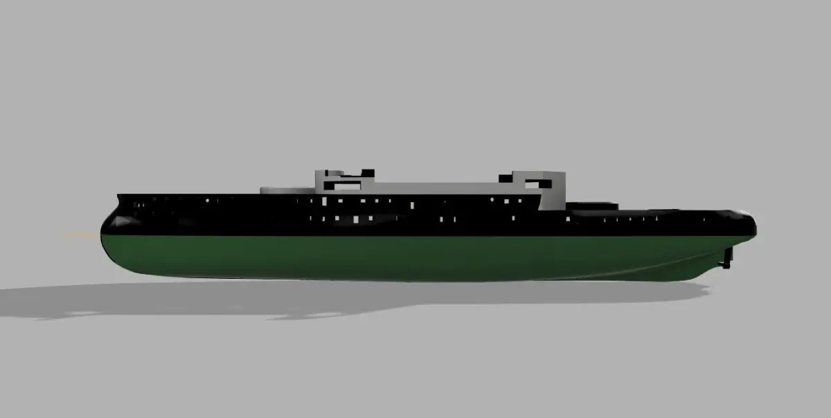 The hull was made with the use of the original Marine Nationale blueprints, the details were modeled from photos and postcards, the CAD model was made with RC use in mind, the lower part of the superstructure is included in the model.