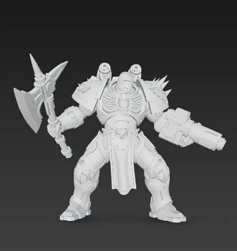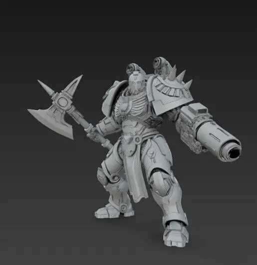 Description:Stand at the vanguard with the Iron Oath ‘Guardian’ Heavy Infantry Armor, featuring thick armor plating, an imposing helmet, a massive war axe, and shoulder-mounted rocket pods. This dynamic pose makes it perfect as a commanding figure in tabletop battles or the centerpiece of a sci-fi diorama. Meticulously designed, the model balances aesthetics and battlefield function.