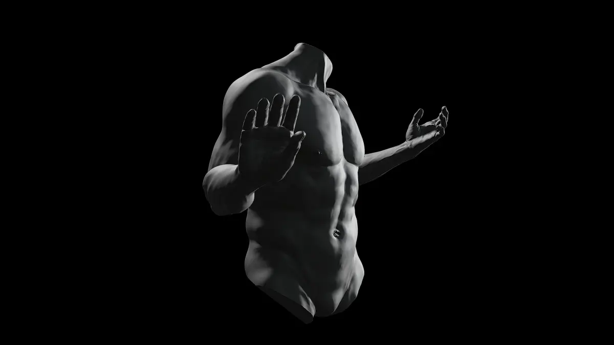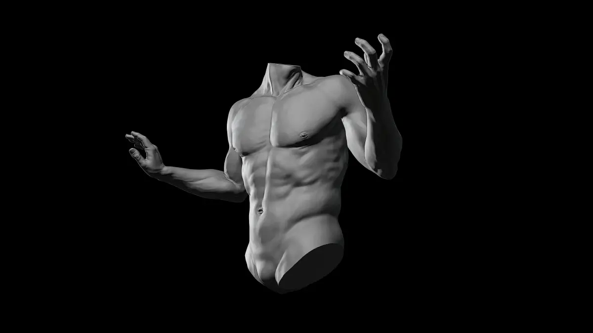 Anatomycal set of a male posed body parts, Torso with Arms, created in Zbrush.This models is a high poly sculpt with decimated (triangulated) topology.