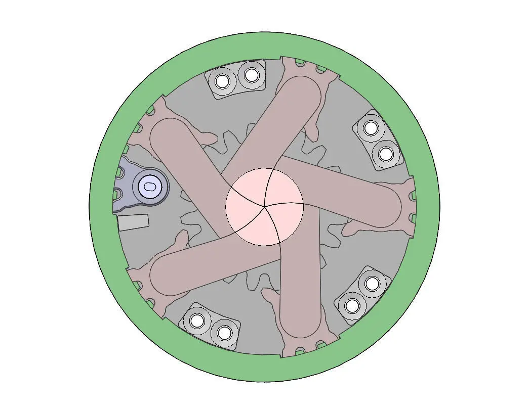 Mechanical Iris structure designed for 3d print. There are 5 leaves. Then you rotate the Drive Partor the middle plate, the center hole can open or close gradually. The center hole is diameter 10mm, the outer size is diameter 45mm and thickness is 8.2mm. To assemble the parts togther,some M2 screws are needed.
