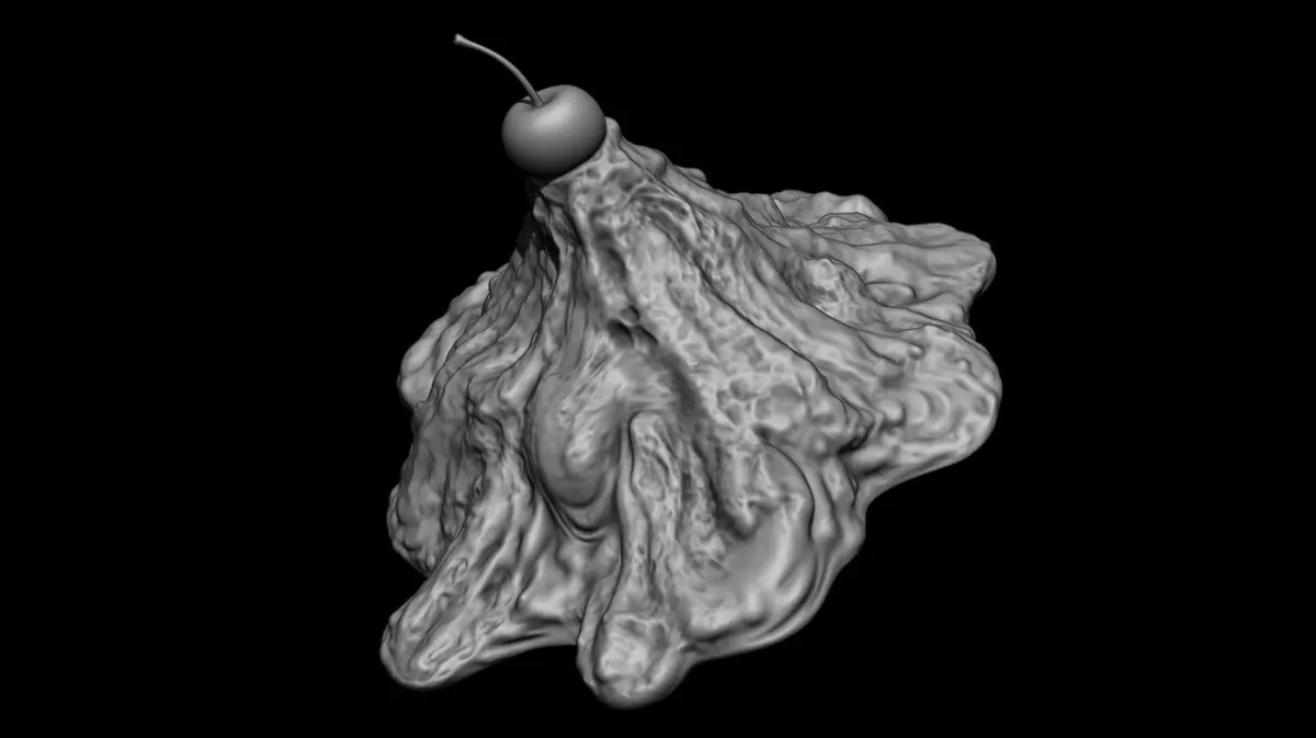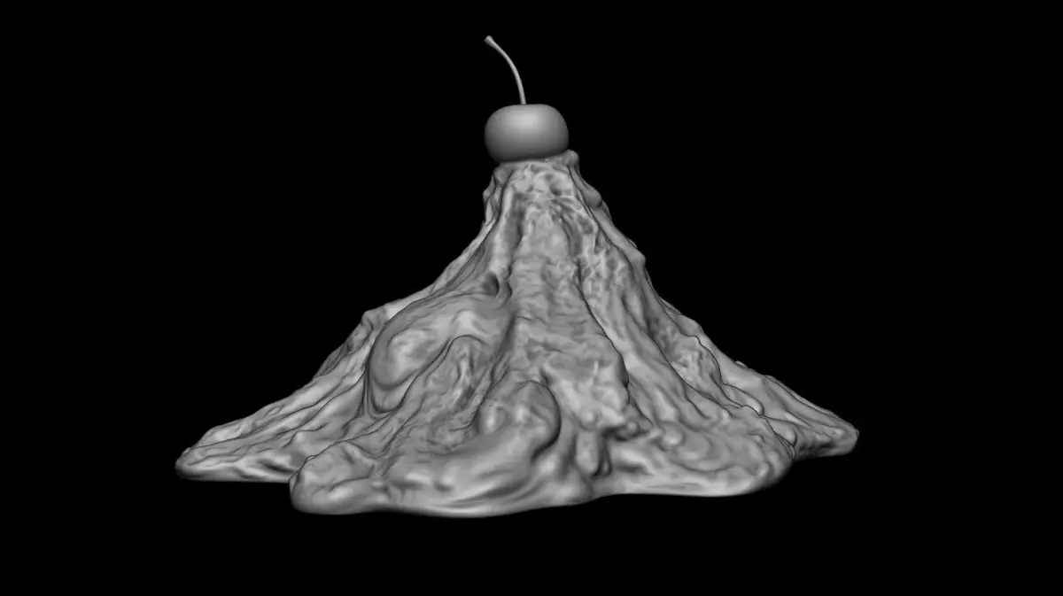 This is a 3D Printable pie cream pile with a cherry on top as seen in the 80´s sci-fi cult classic movie Killer Klowns from Outer Space, from the scene when the Klowns melt a security guard throwing pies at him.