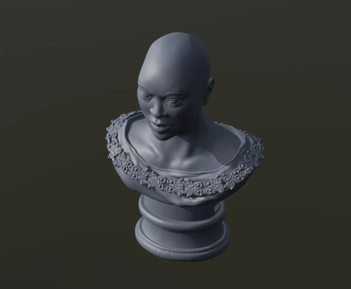 3d printable bust/statuette of a woman wearing a chain of office necklace, historically worn to signify the wearer's powerful position, such as that of mayor, knight, or judge. 12 cm tall, please see my other models for game-ready version with textures!