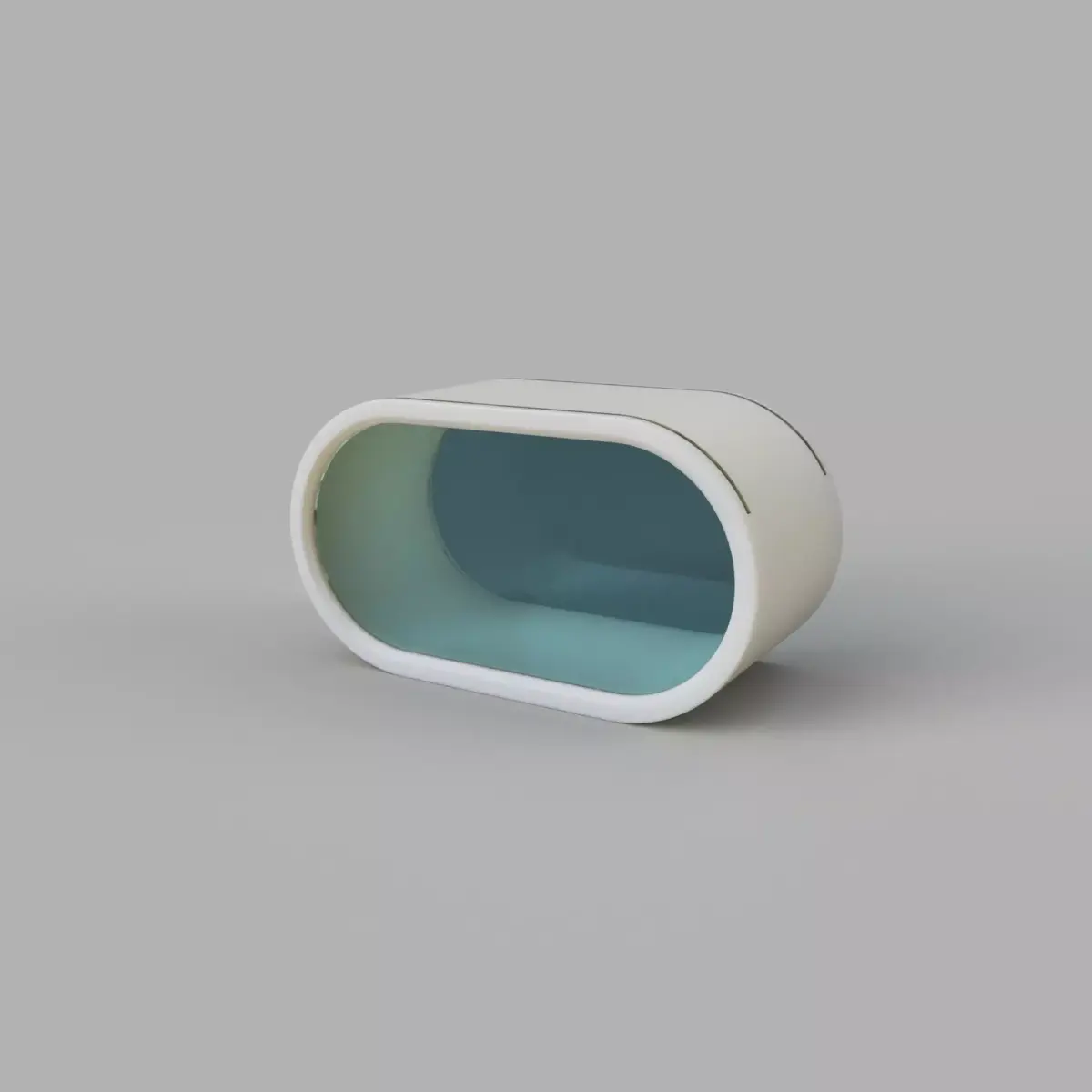 - Shape: Rounded rectangular capsule with a hollow interior and smooth contours