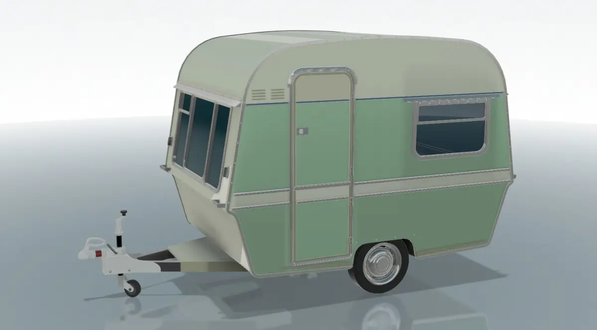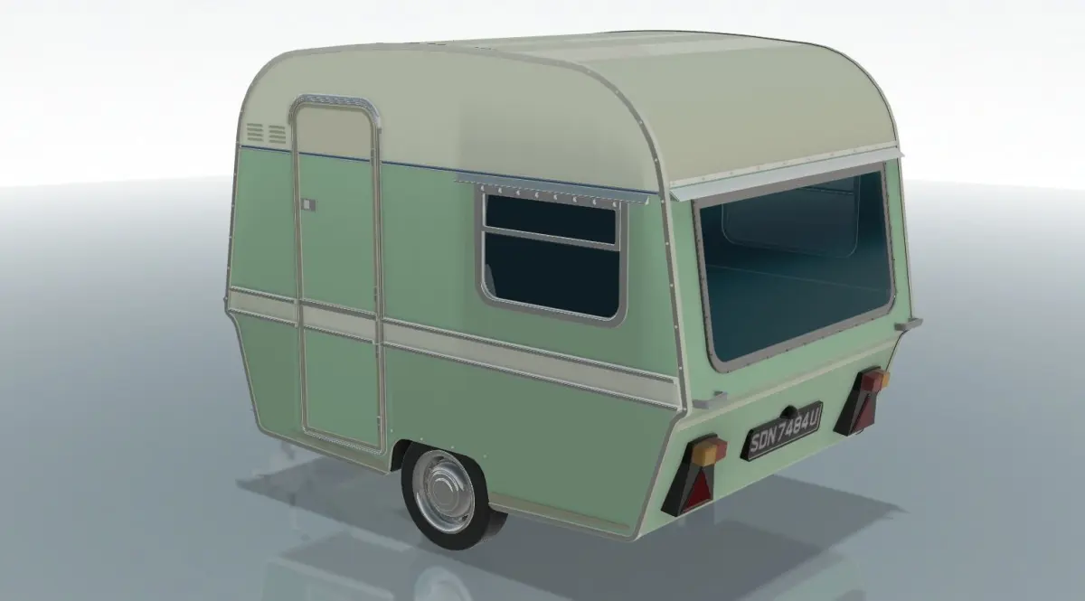 A printable model of the late 60s popular Thomson Mini Glen 2-berth caravan.