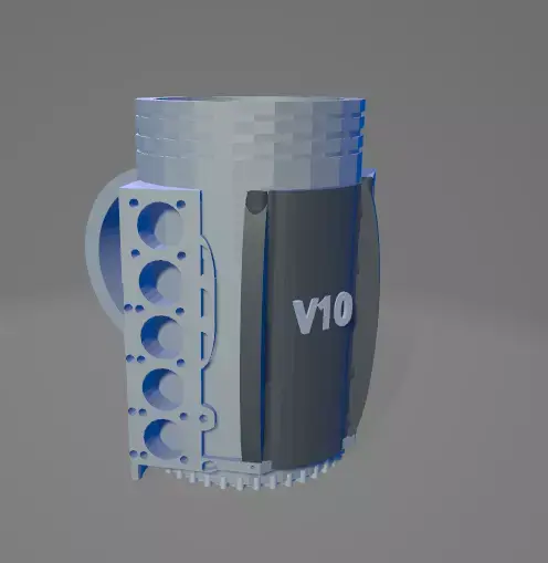 Bring automotive power to your drinkware collection with this V10 Engine Block Beer Mug, designed specifically for 3D printing. The model replicates the iconic shape of a V10 engine block, complete with realistic cylinder details and a fixed flywheel base for stability and style.
