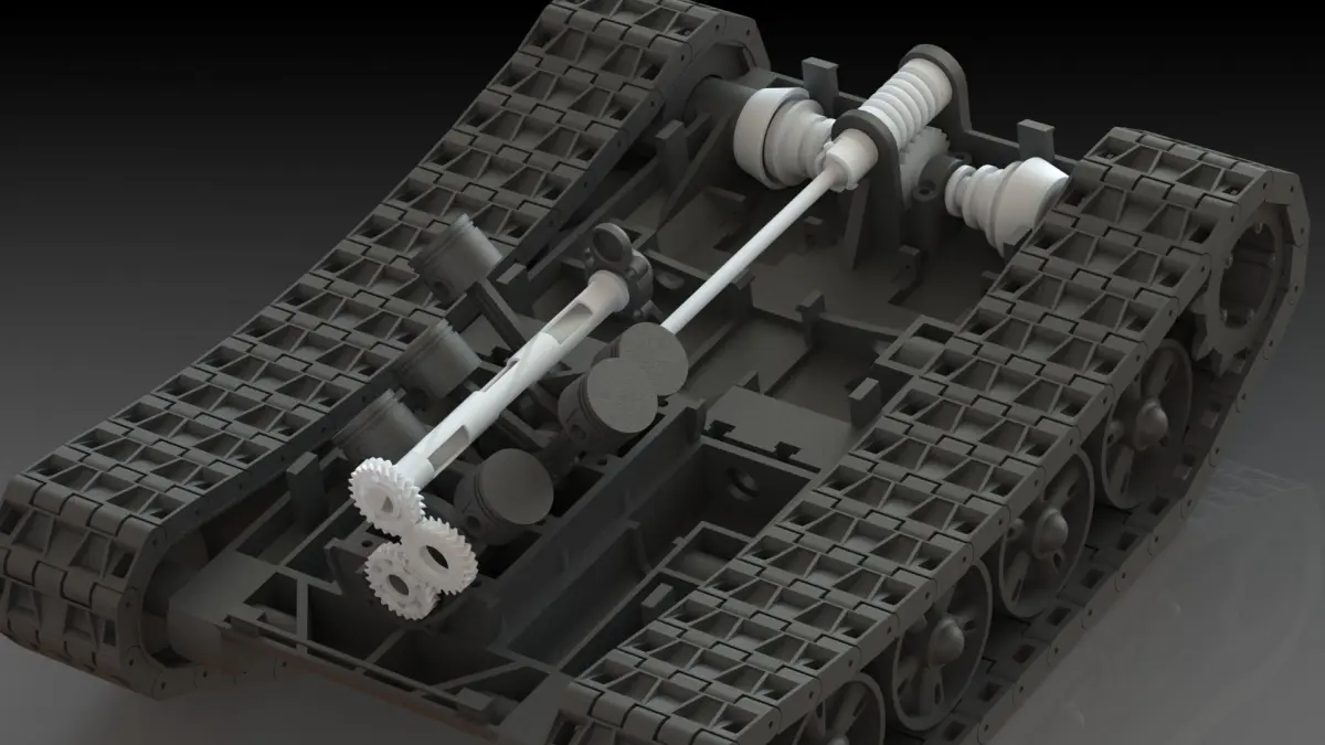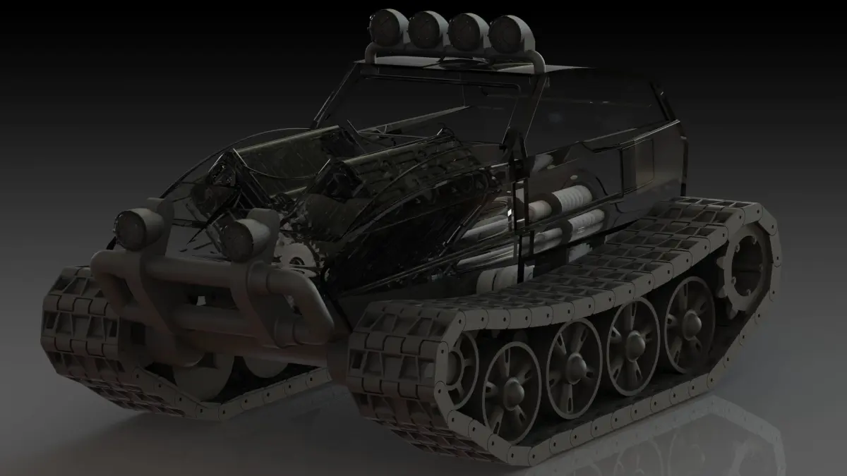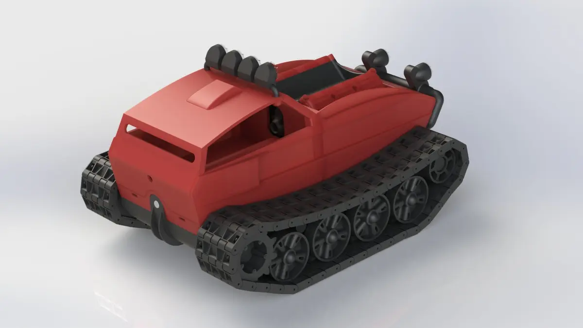 This is a V6 air engine powered tracked veicle, if you want you can try to pirint it in 3D, you can radio control it with 2 servos and 4 AA battery, the engine printed in 3D has to be a little bit modified but it should work, my racomandation is to put a brushless motor inside the crank case instead pistons and crank shaft.The model is quite big, i tried to print it but i finished the plastic before to finish the model XD