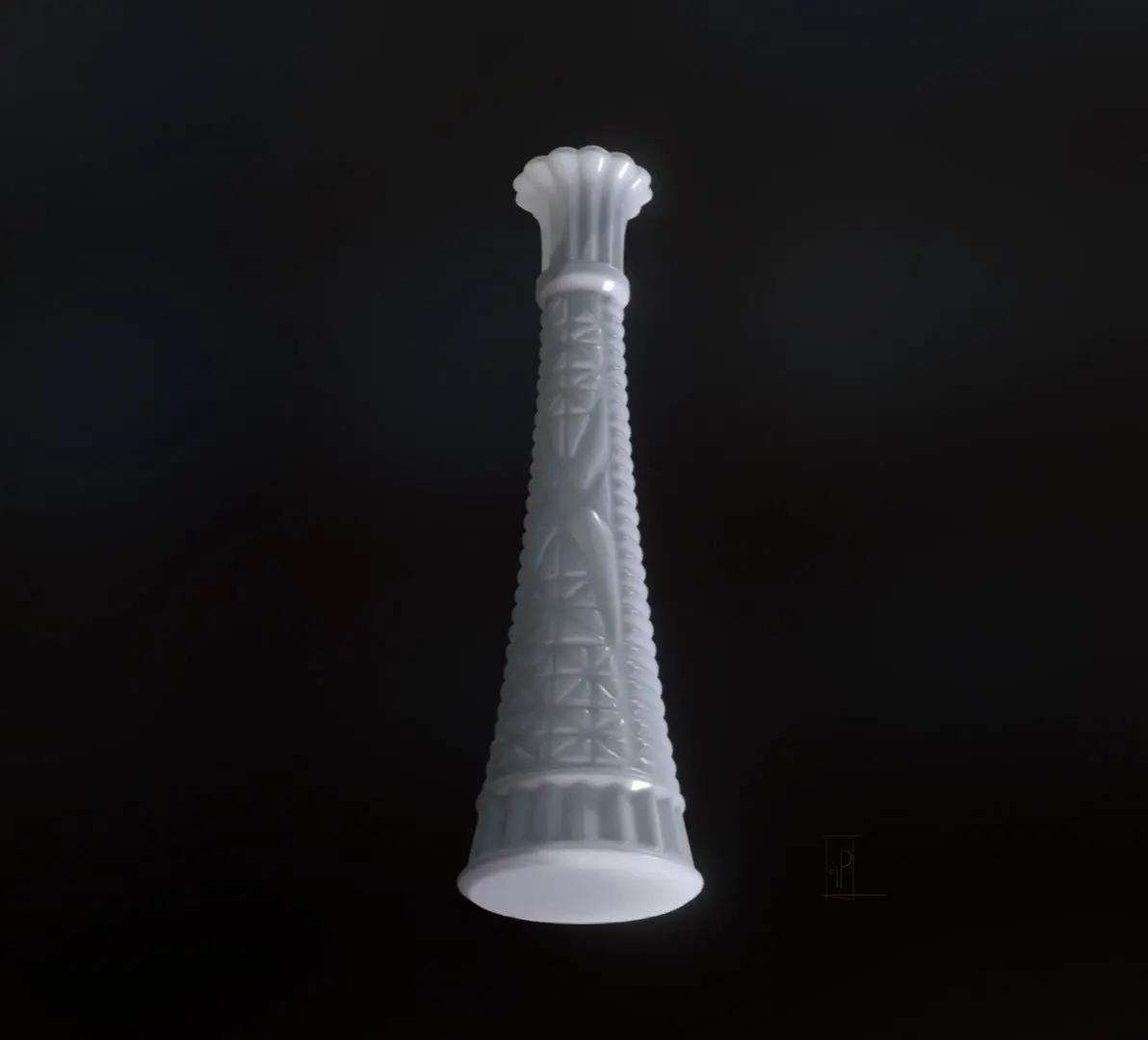 3D printable vintage milk glass flower vase, 20cm tall. Has a hollow interior space for flowers or other objects.Please see my other listings for game-ready optimized version including dried flowers!