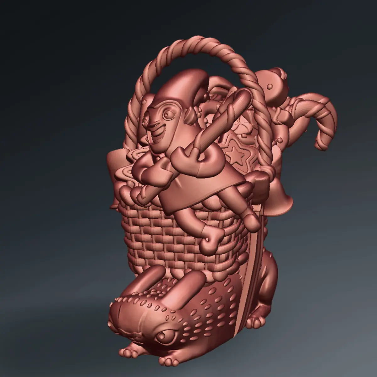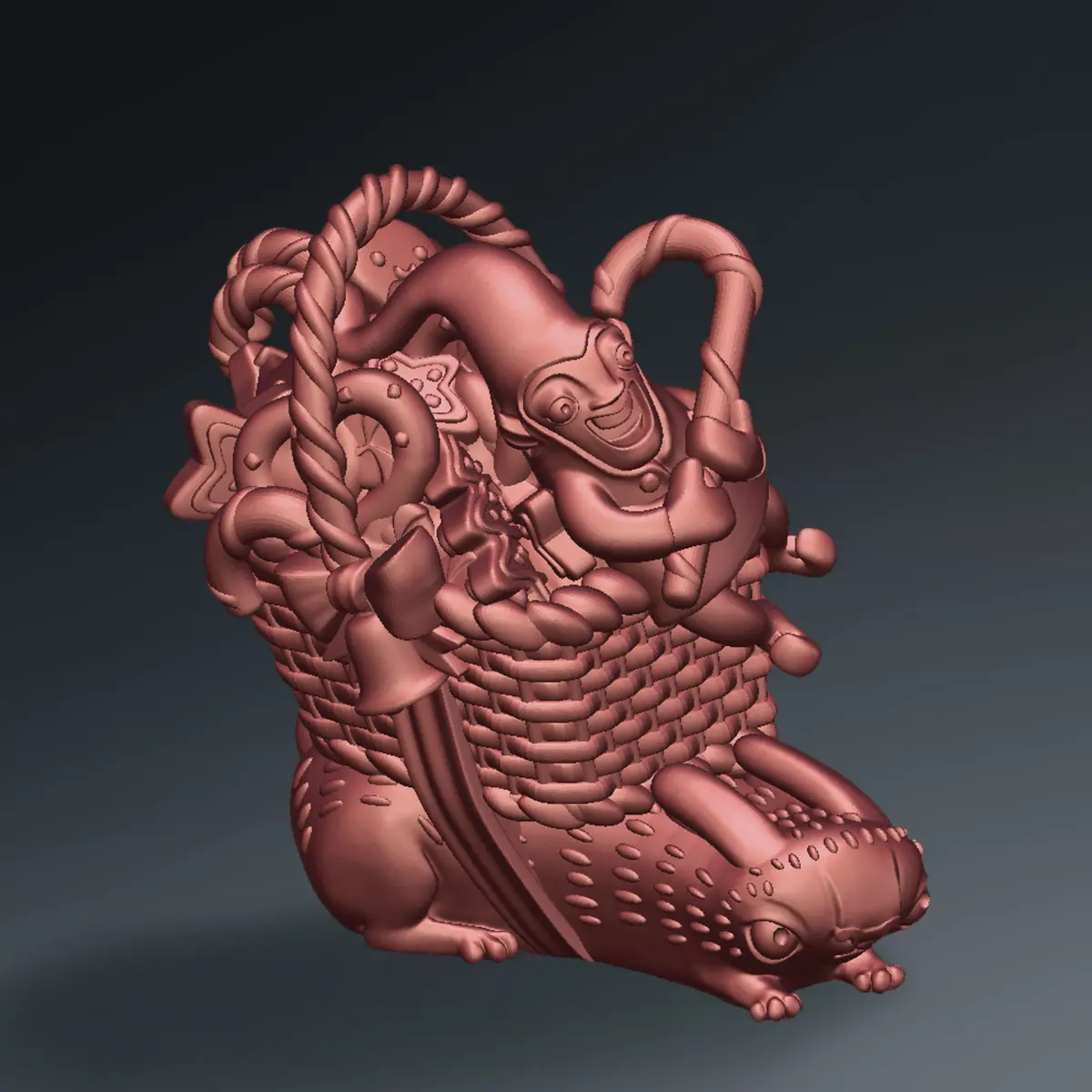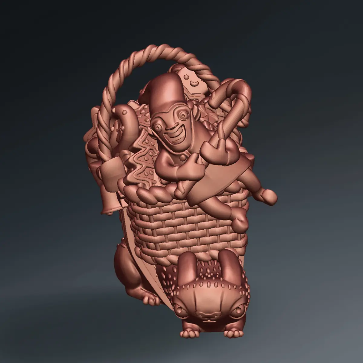 3D printed Funny Christmas elf with bunny and gifts 3D print model
