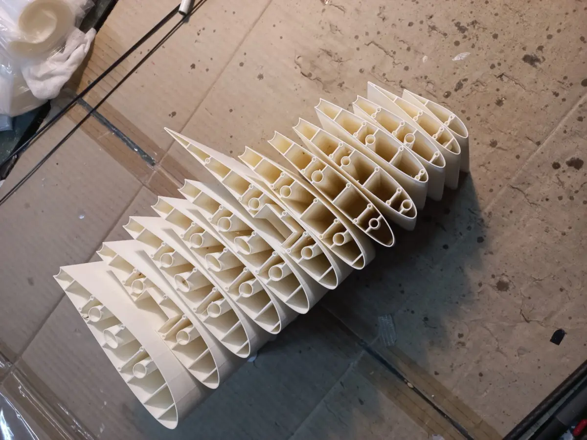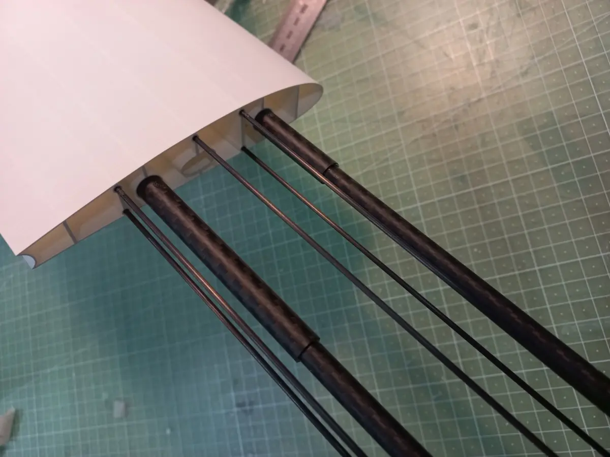 The carbon pipe spars that intersect inside the fuselage are designed in such way that they not only stiffen the wing, but alsomake it easy to connect and disconnect. Actually, only 1 steel pin makes them to be fixed.
