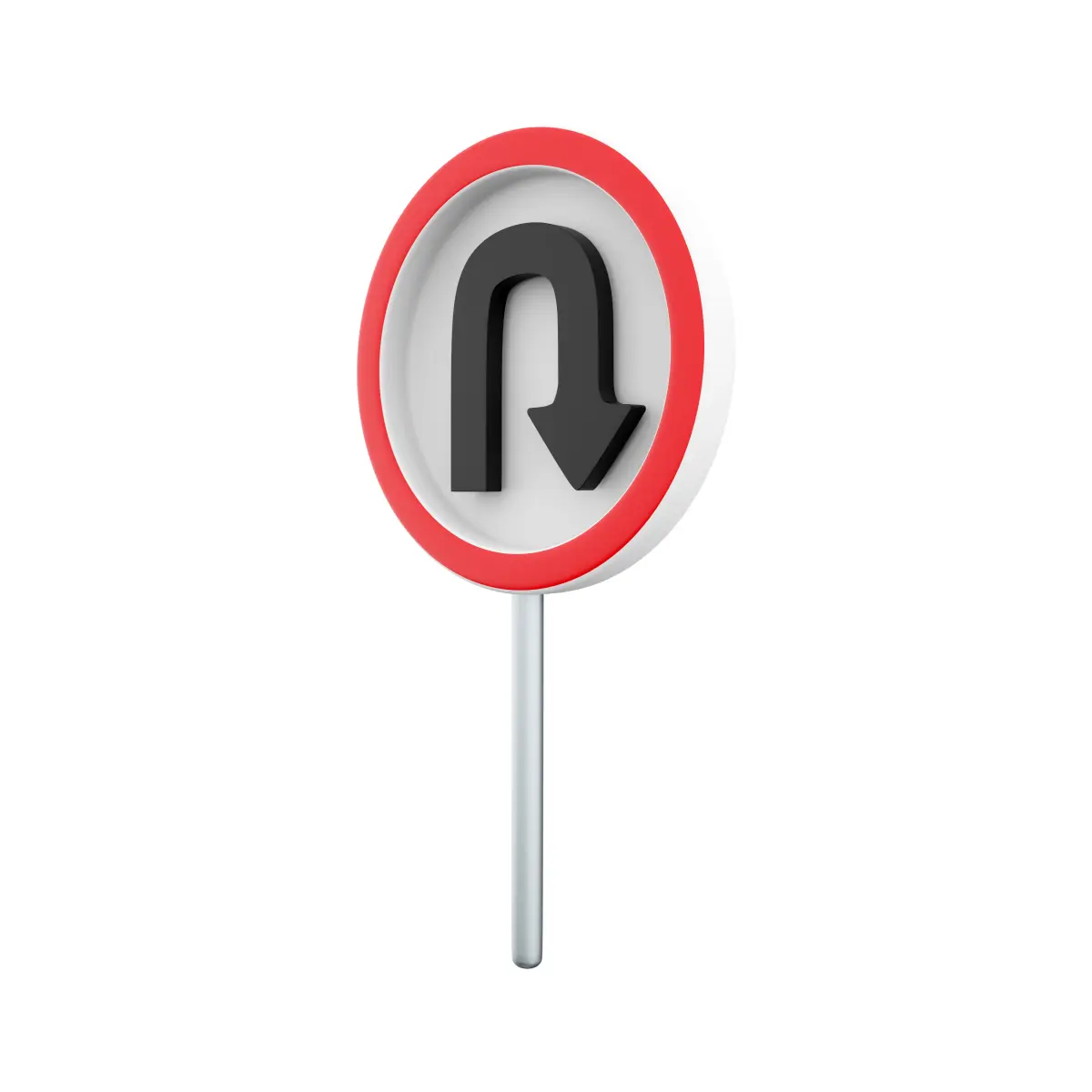 3d render Prohibition Sign U-turn. 3d rendering Prohibition Sign U-turn cartoon icon