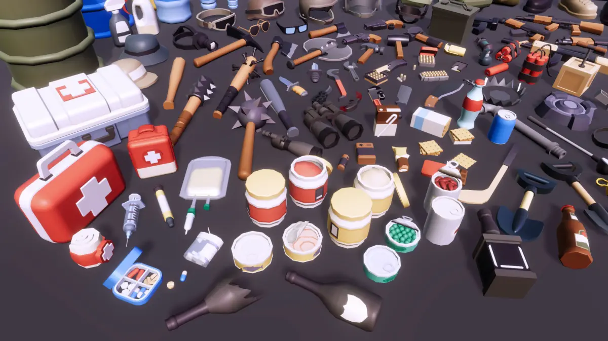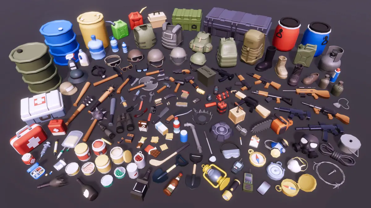 It's a low-poly style Casual Survival Modeling that can be applied to Action genres ofgame production.This package contains total of 150 FBX Items
