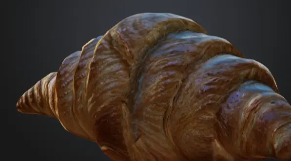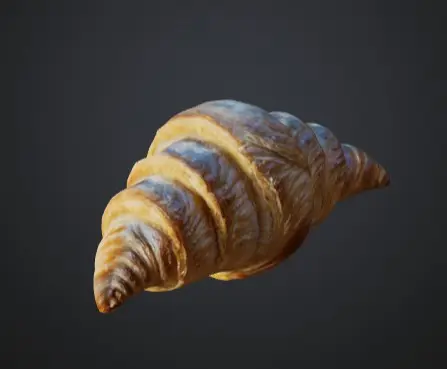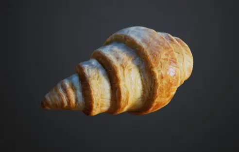 This 3D model showcases a beautifully detailed croissant, with its signature flaky layers and golden-brown crust. The model captures the light, buttery texture of the pastry, making it ideal for bakery scenes, food product visualizations, or culinary games. Whether used in a breakfast setting or a café environment, this realistic croissant will add a touch of authenticity and visual appeal to any project.