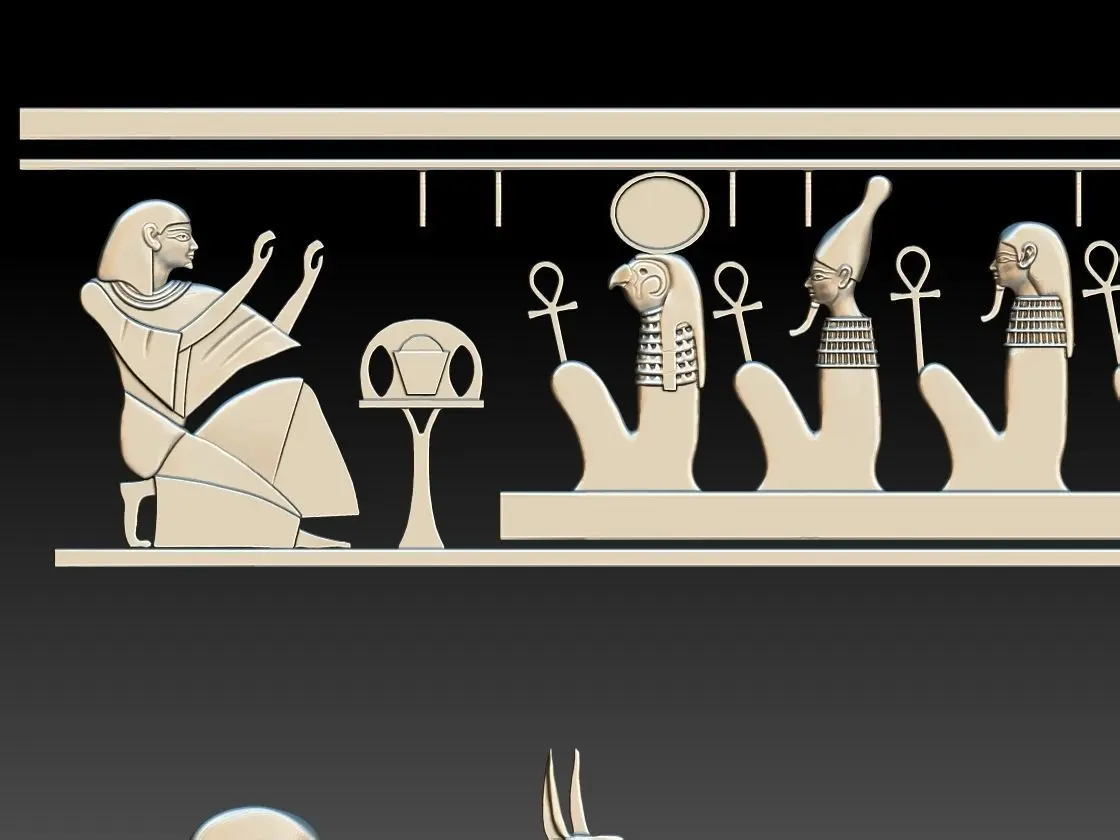 The model reflects the artistic traditions of Egyptian reliefs, where Pharaohs were shown in profile with stylized features. Unlike a generic egyptian statue 3d model, this relief emphasizes the flat, linear style that made Egyptian art so recognizable.