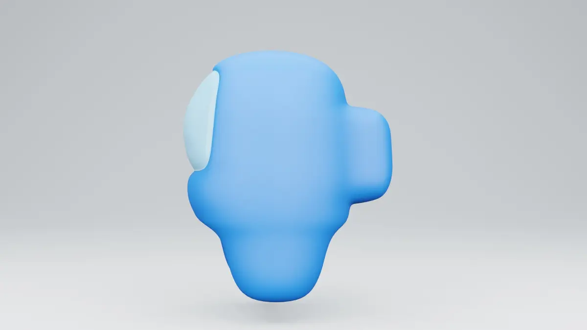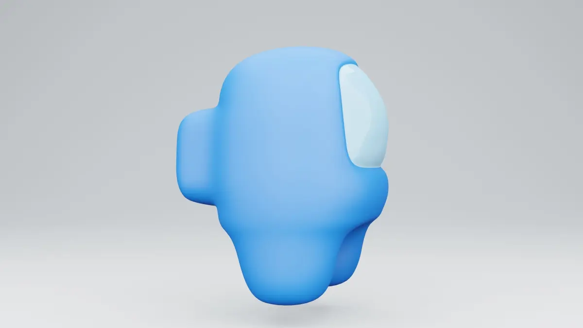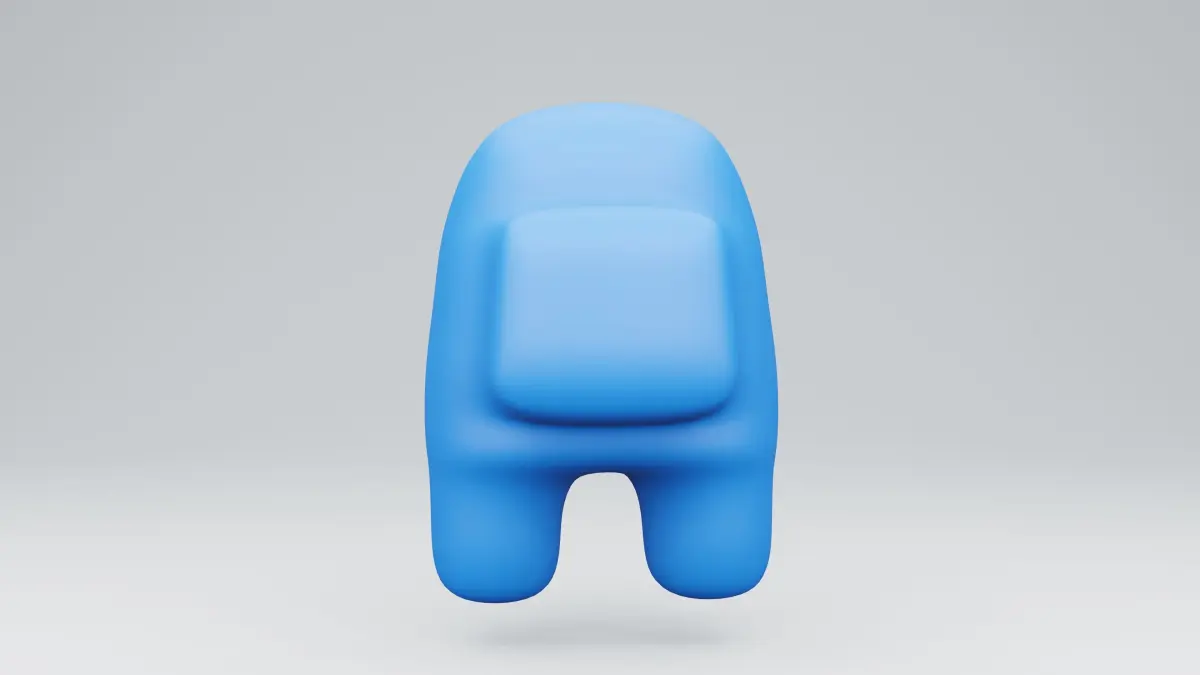 3D render Game Among Us. light blue body. Characters from cute games floating in space cute chubby A deserted figure like an egg