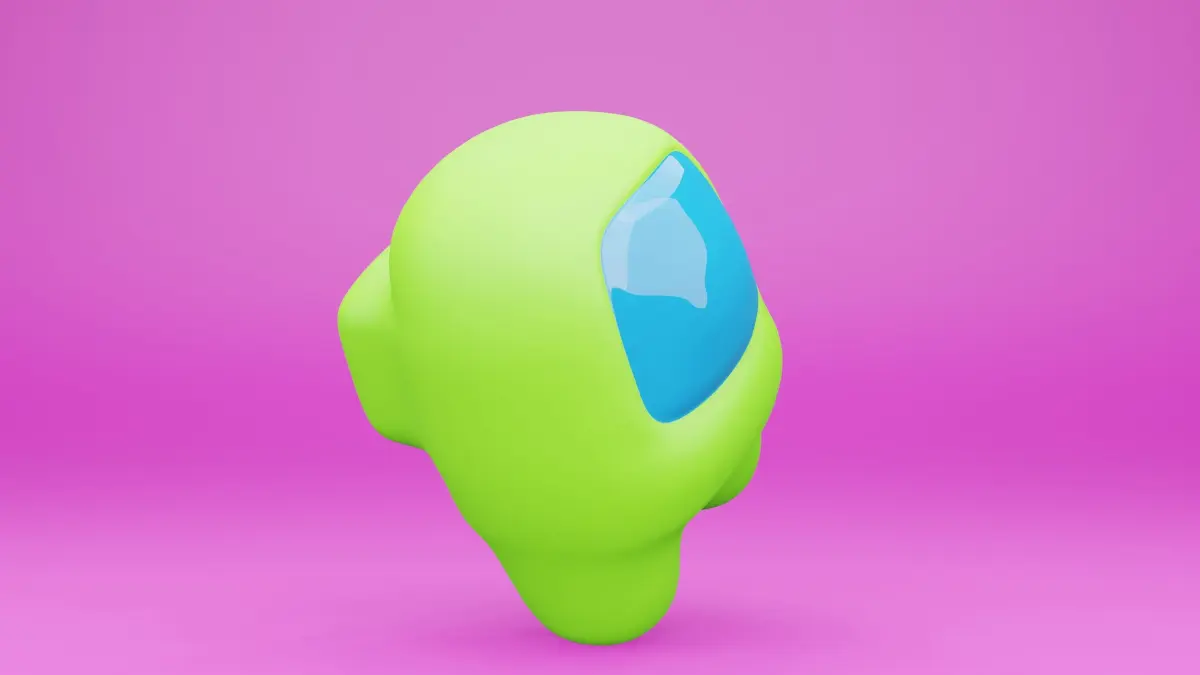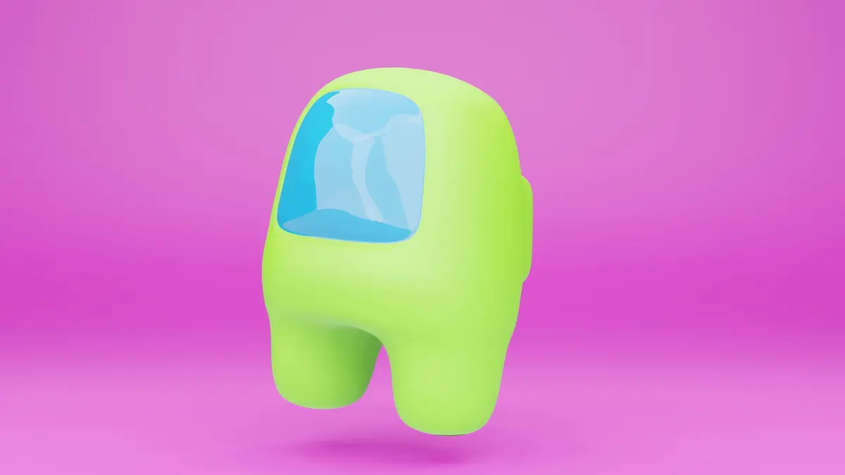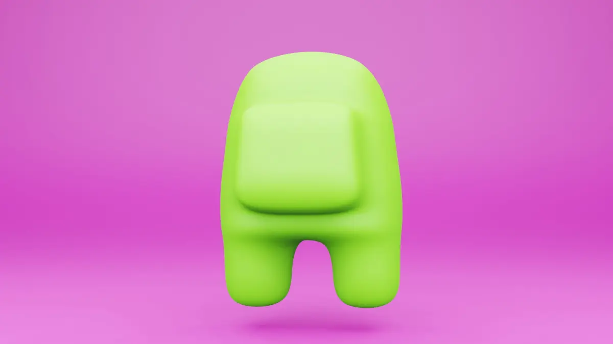 3D render Game Among Us. light green body. Characters from cute games floating in space cute chubby A deserted figure like an egg