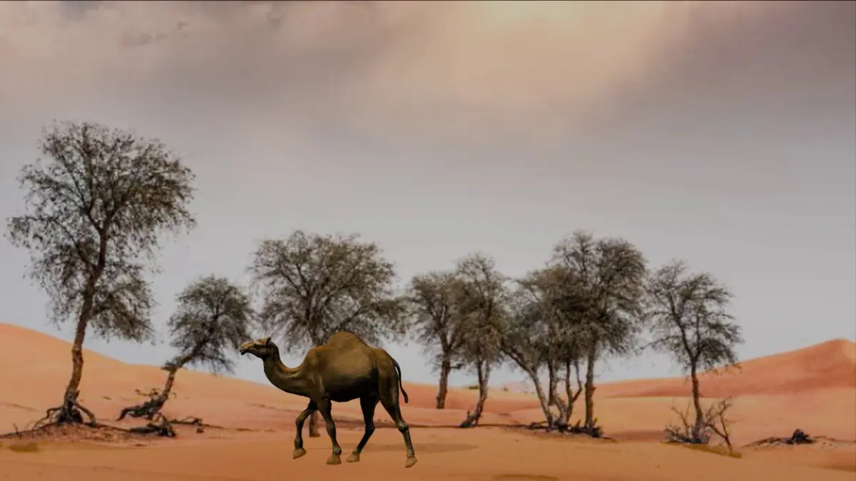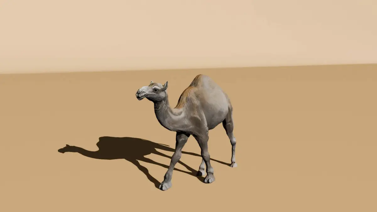 A Highly detailed 3D model of a realistic arabian camel which is rigged and animated, perfect for integration into games, movies, and animation projects.