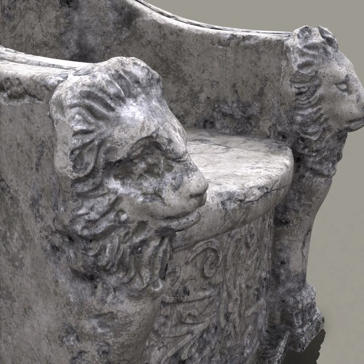 Roman Stone Chair ZBrush high poly sculpture in high res with polypaint. The OBJ files have vertex colours included and can be rendered or baked. Cinematic high quality model.