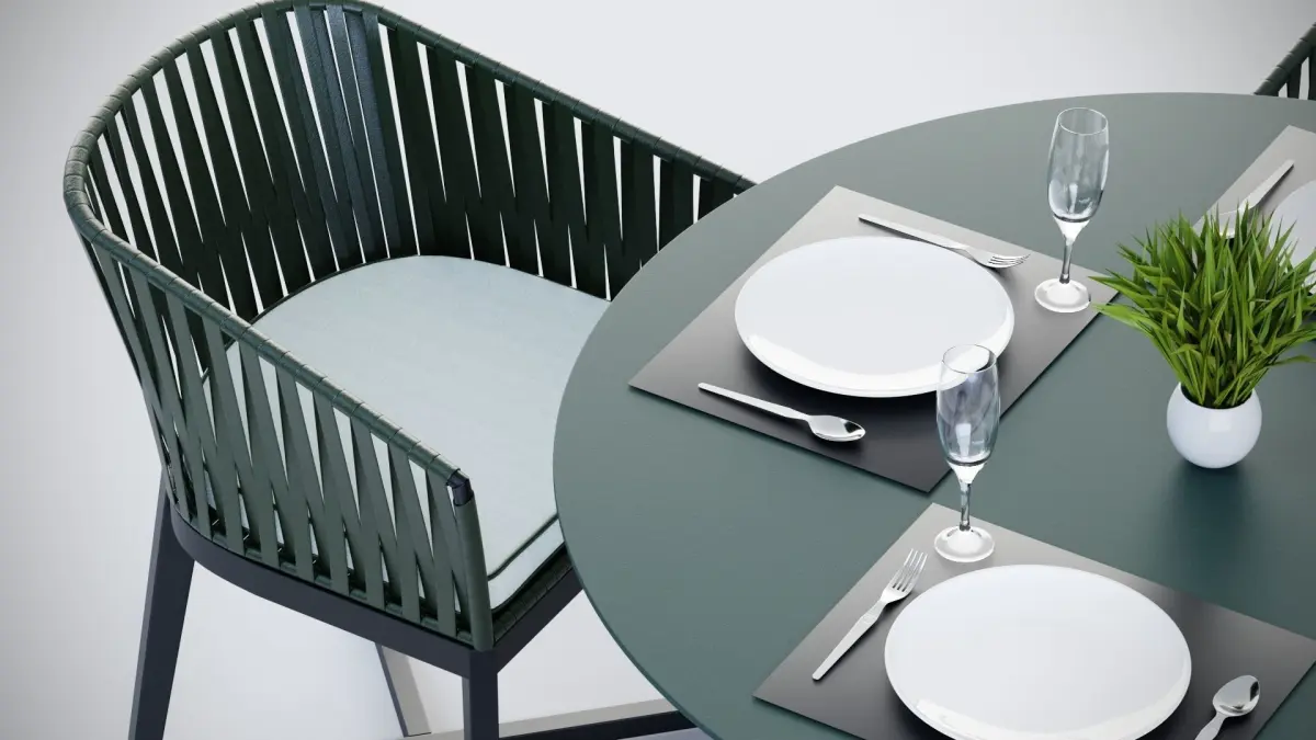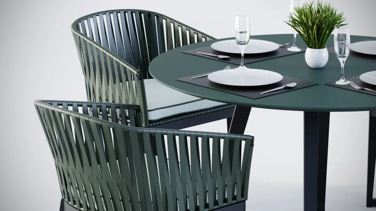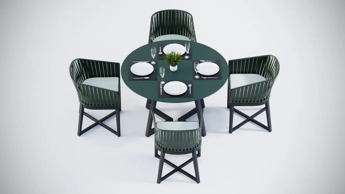 3D Rounded table and 4 rope chairs 3D model