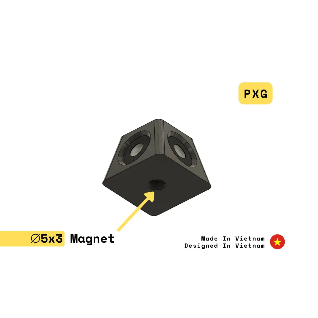 There is a hole at the bottom of this part to insert a magnet. The hole has a diameter of 5.2 mm and a height of 3mm.
