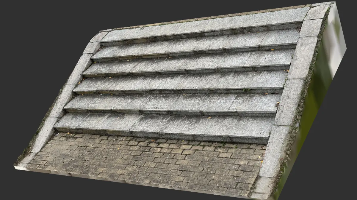 - Long steps in the park. steps. stairs. 3d scanning step. 3d scanning stair. Floor tile steps.Steps with leaves in the park.