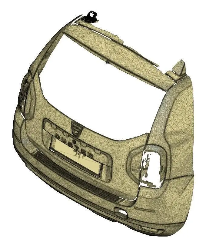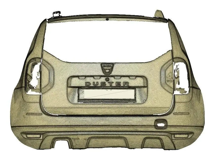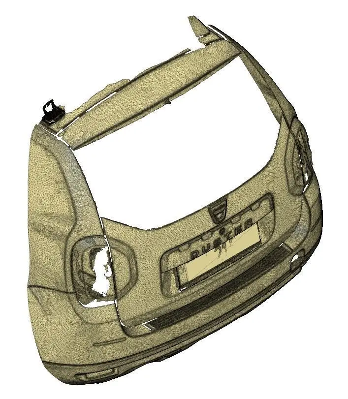 This is a scan, 1:1 scale, of the back from Dacia Duster 1 FaceLift 2015-2018-ph2 .The file contains all the body elements except the rear window and parts of the taillights.The car was scanned with HexagonAbsolute Arm 8532, with the best precision and resolution.It was used for projection to design parts ( parts that were 3D printed) that will match the exact car dimensions, curves and it worked wonders. If there are any question, i will happy answer and try to help.In preview mode, i attached properties of the mesh with no of Facet, vertex, shell etc.