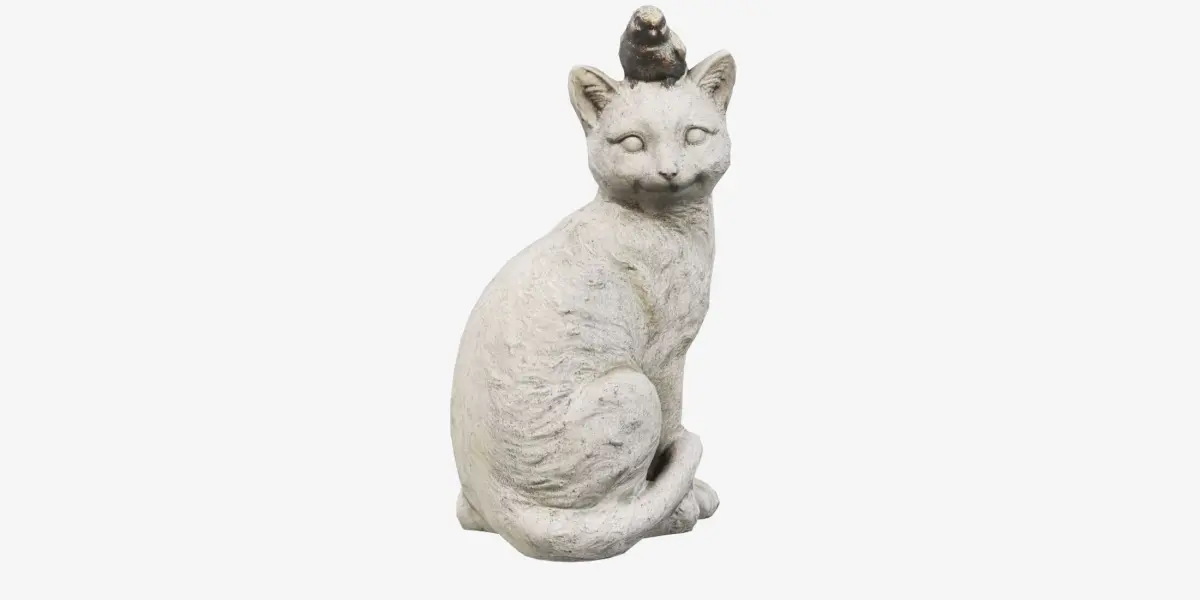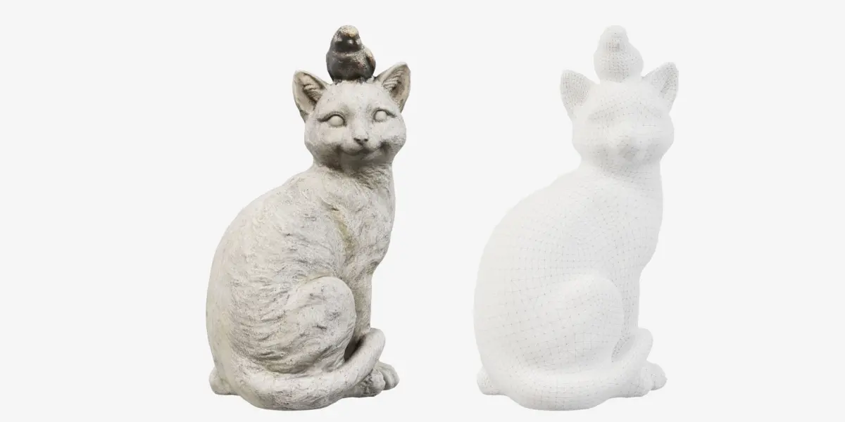 Low Poly 3d model of statue of a cat based on a sculpture captured with photo scanning, using photogrammetry and blender for the mesh retopology and texture baking.