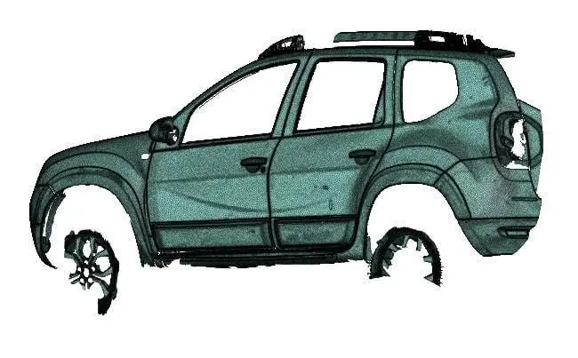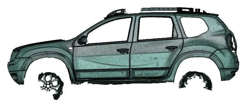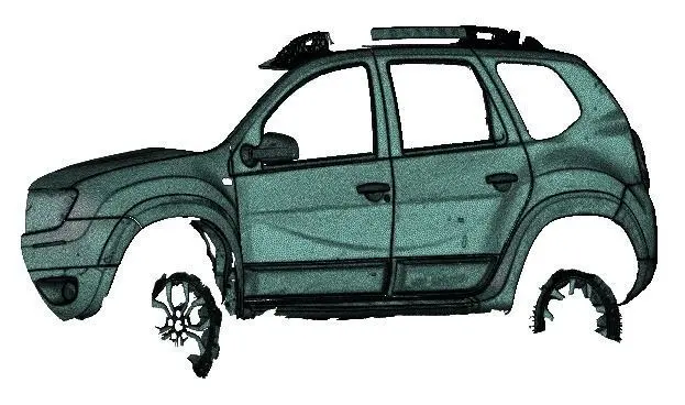 This is a scan, 1:1 scale, of the right side from Dacia Duster 1 FaceLift 2015-2018-ph2 . The file contains all the body elements. Please ignore the wheels, because the car is not stock, it is modified, the engine is lifted 11 cm. The car was scanned with HexagonAbsolute Arm 8532, with the best precision and resolution. It was used for projection to design parts ( parts that were 3D printed) that will match the exact car dimensions, curves and it worked wonders. If there are any question, i will happy answer and try to help. In preview mode, i attached properties of the mesh with no of Facet, vertex, shell etc.