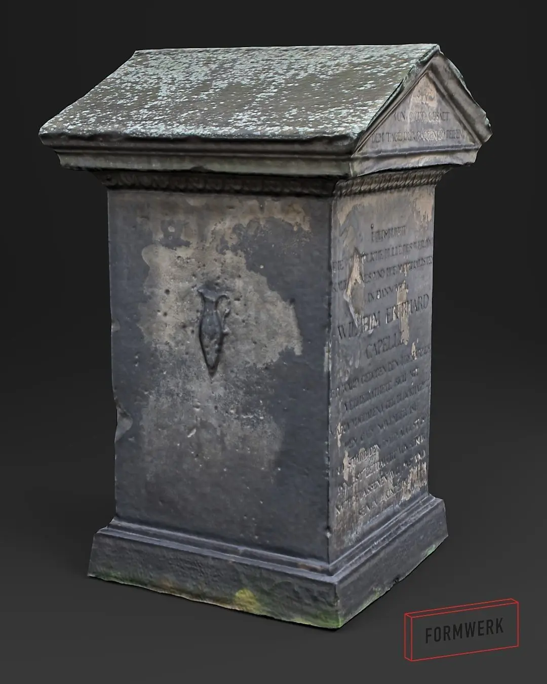 This tombstone is located in northern germany and was scanned by us using photogrammetry. We included the originial Highres File as well as a completly retopologized Low Poly version.