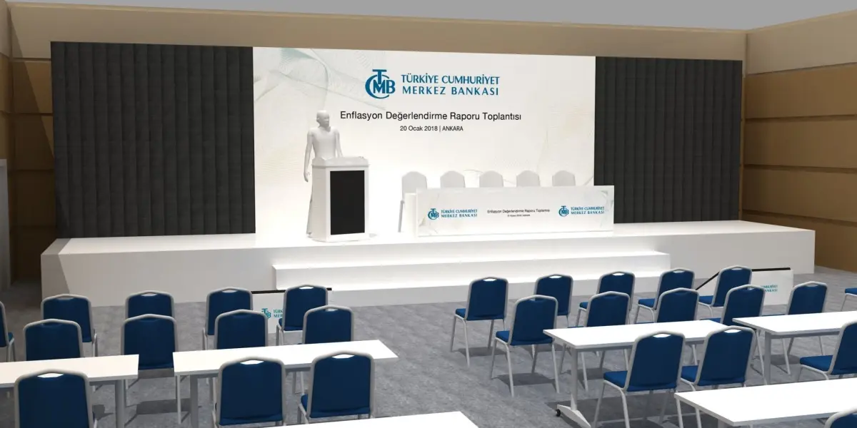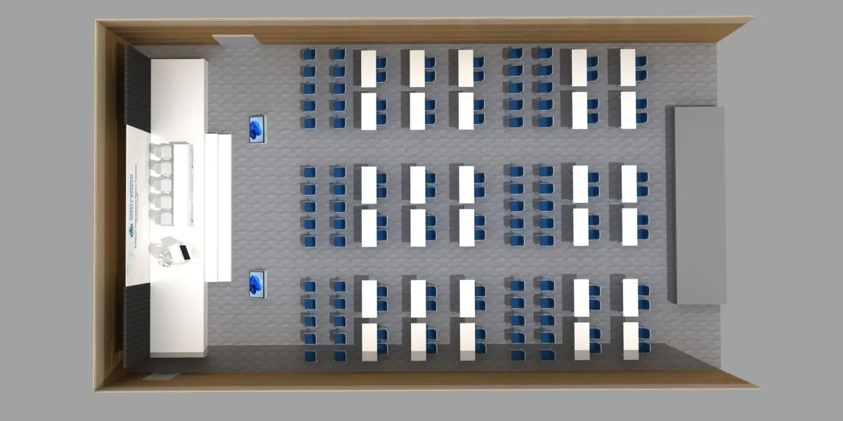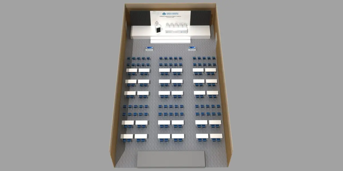 This is a 3d Hotel Room Stage And Seating Arrangement decoration.