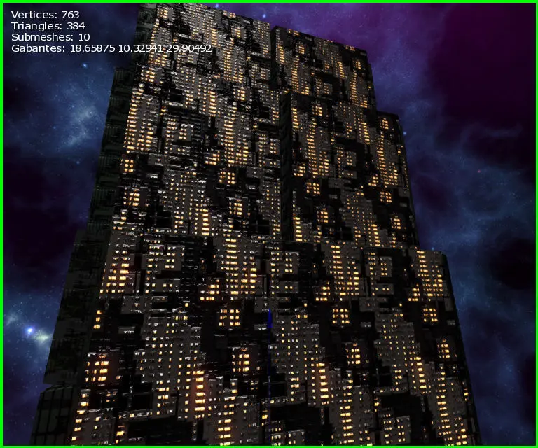 This is a Sci-fi skyscraper set that is made of several buildings. The models are very low poly. Between 900 to around 3000 polys. The structures were done in 3Ds max 2009 with the greeble plugin.