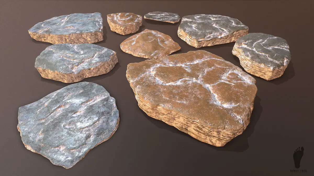Excellent Package of game model 3D Rock formations, all with unique textures, including versions of the rocks covered in snow! Great 3D models that will enhance your terrain, canyons and exterior environments in your game map. Includes 4K PBR Textures created with high-poly 3D geometry! A great package of 3D assets for your game engine or personal projects!