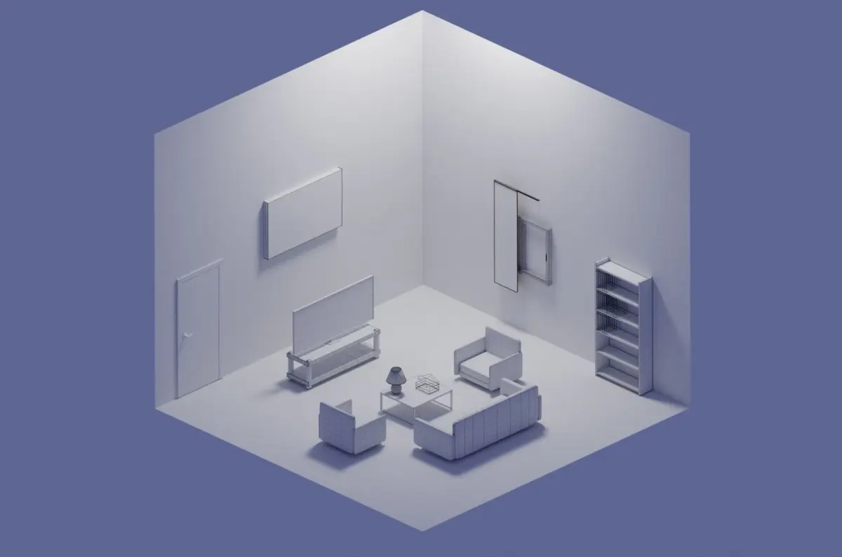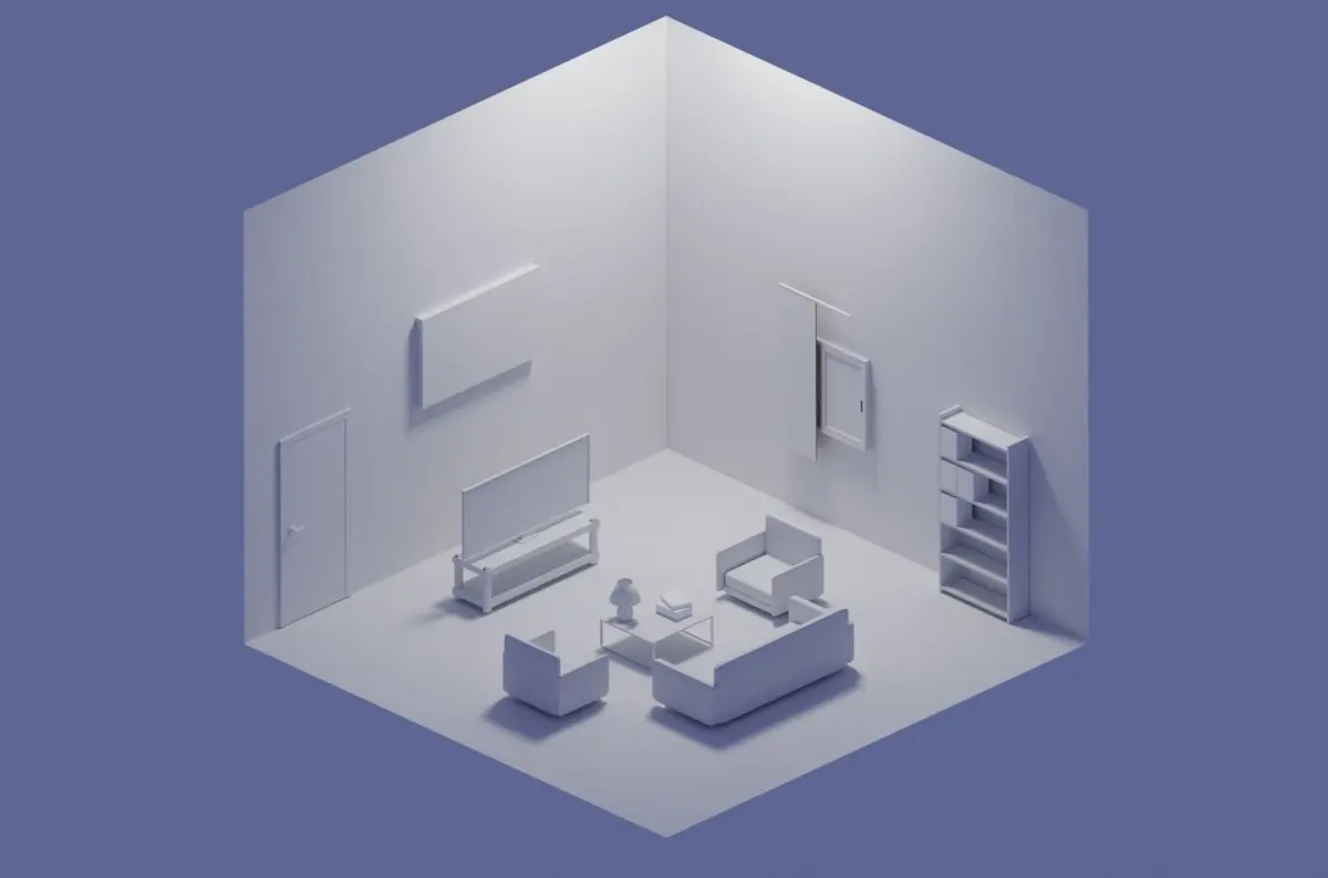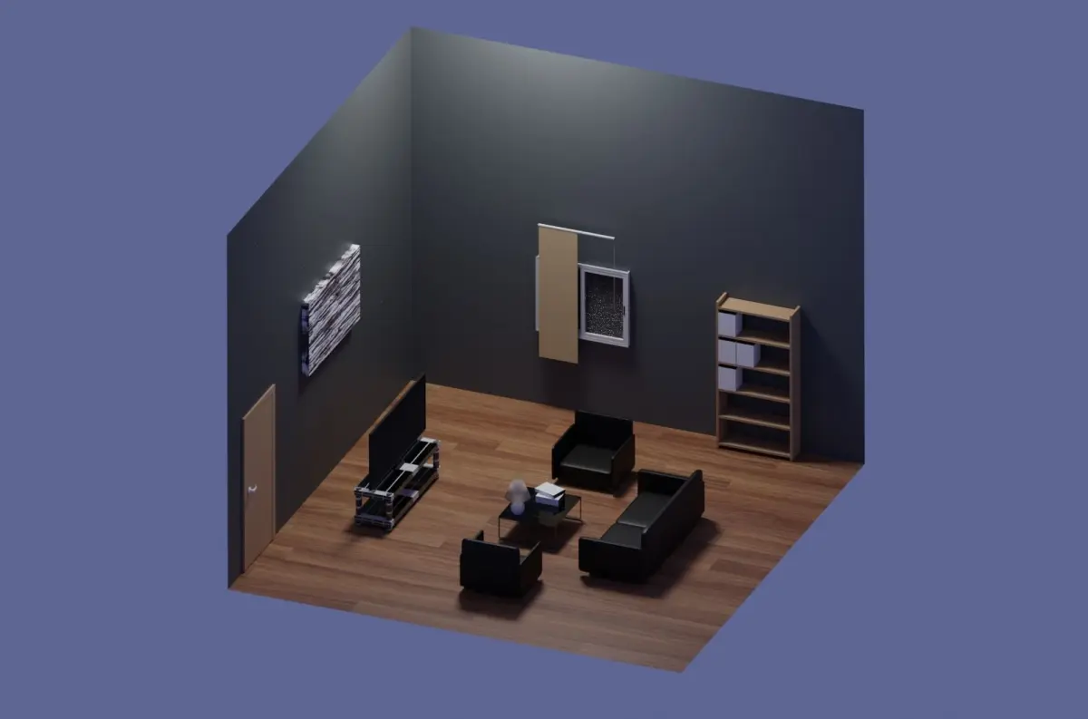 3D simple low-poly living room design