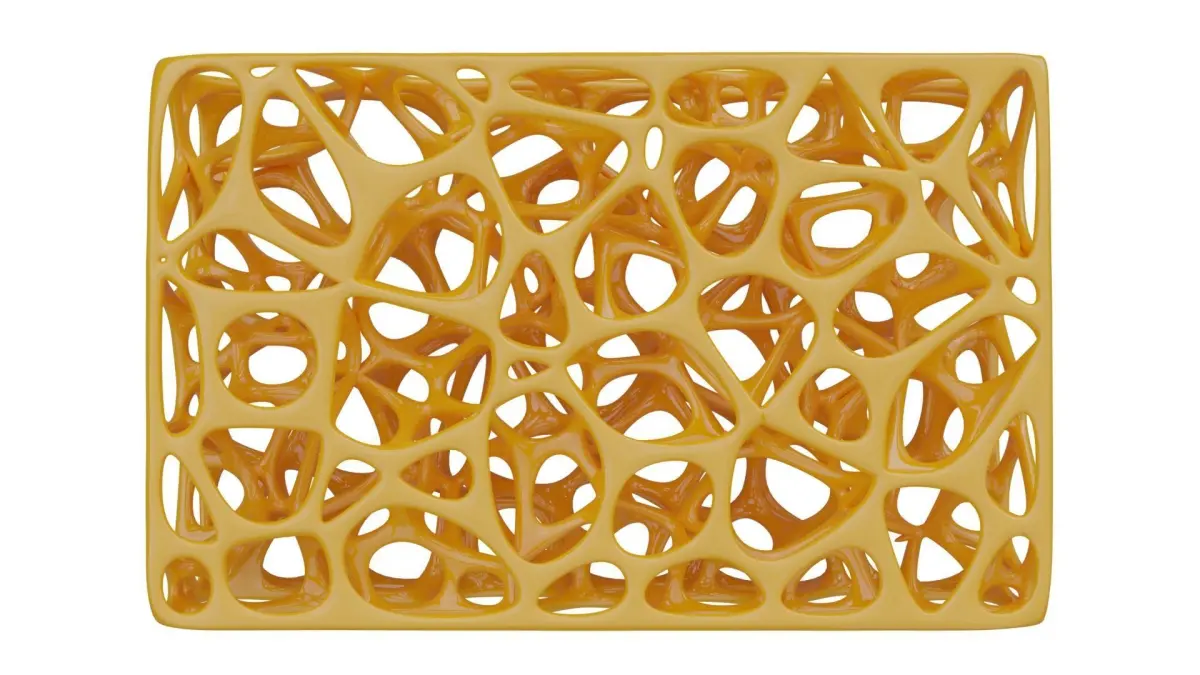 A Skeleton Structure, consist of 3D Cells made by the famous Voronoi Algorithm, a smooth surface for the skeleton was created to give thicknes to the cells, in order to form a web of intersected 3d Meshes and a big membrane, the final output is an architectural figure full of cavities and relaxed form, all the views with view the structure as a scifi parametric variable mass.