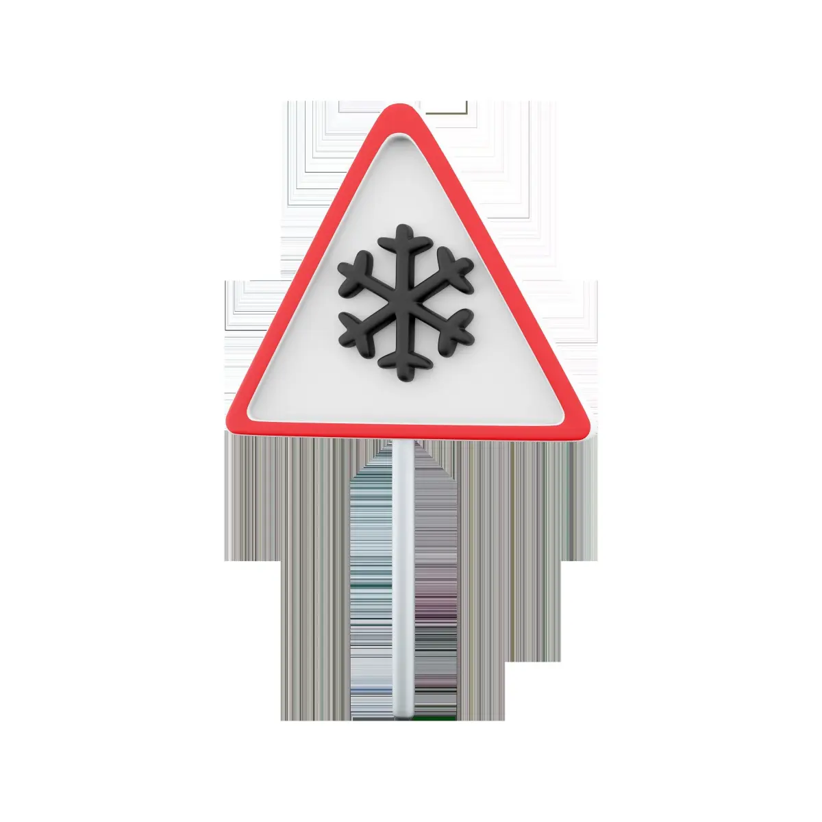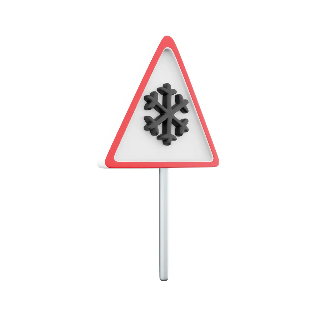 3D render illustration of a triangle road sign for the cold icon. 3D render snow road sign icon on white background