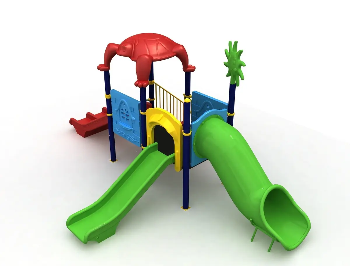 This is a metal 3d playground. include in binary Slide , tube slide , flat slide, turtle roof, plastic barrier and polythene stairs.