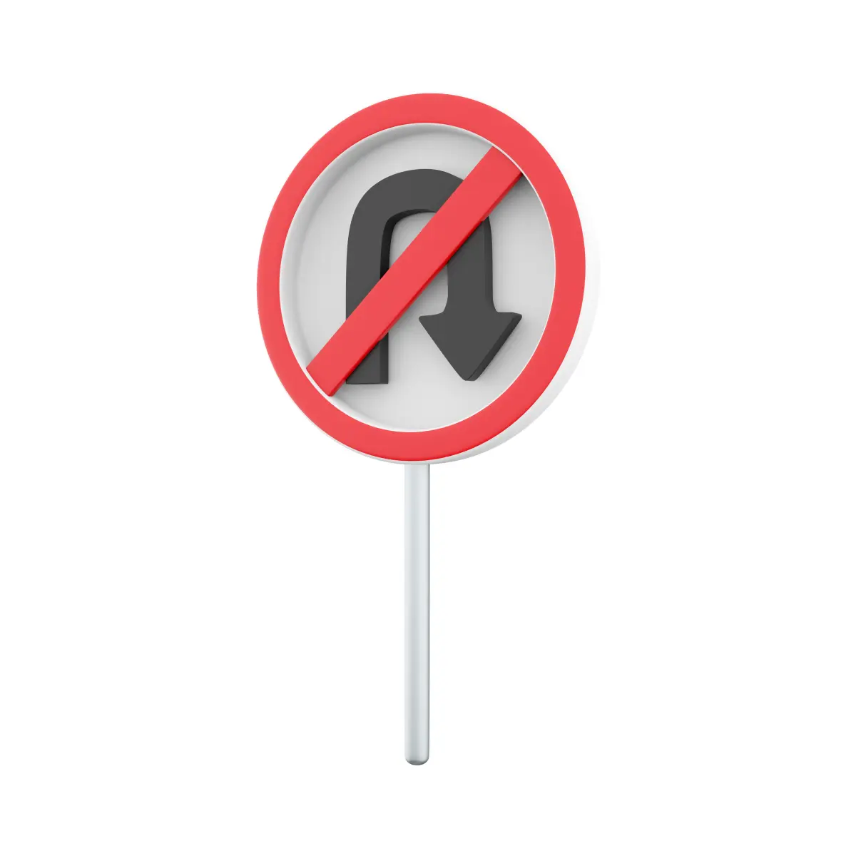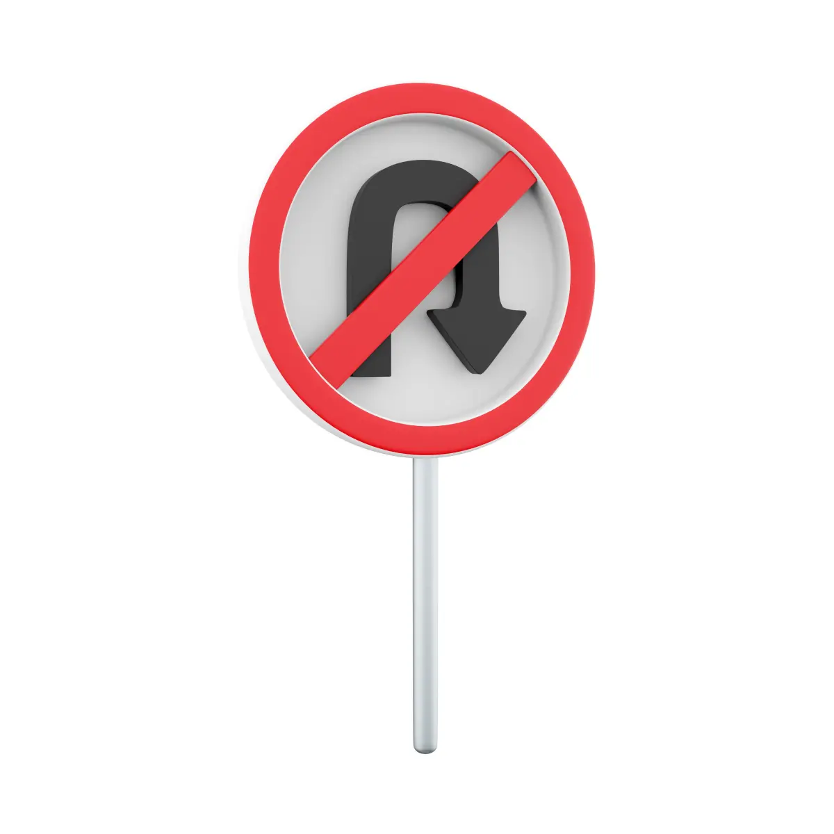 3d render Label No U-turn. 3d rendering Sticker No U-turn cartoon icon