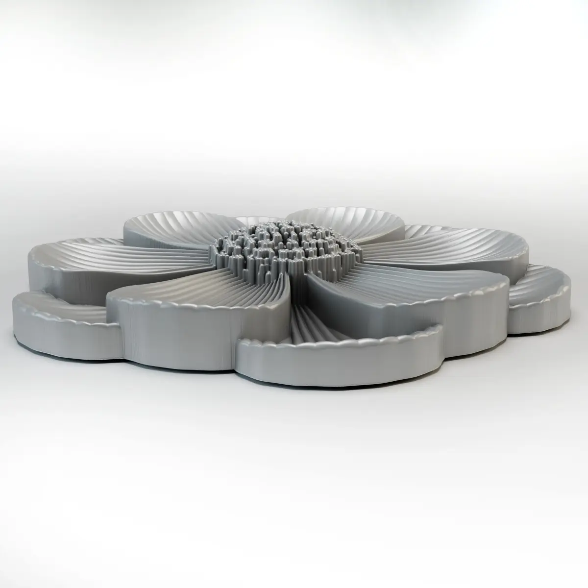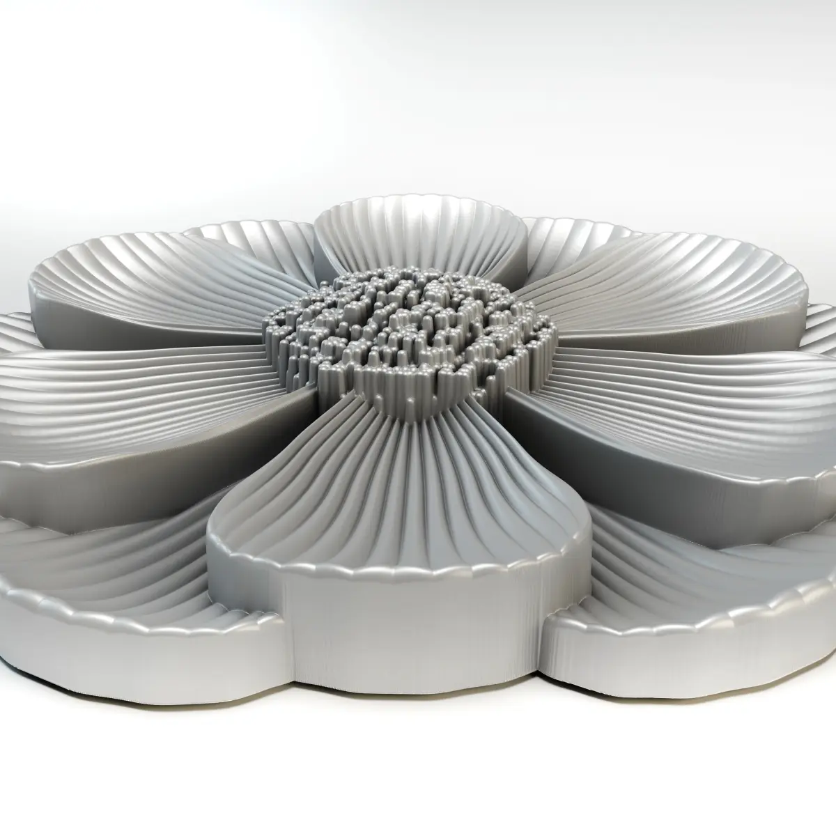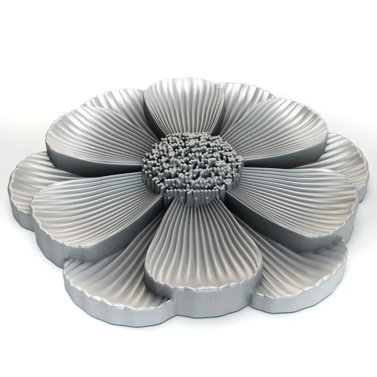 3D stl model of a flower for CNC router.The 3d model can be used for interior decoration, creating scenes in your works, but this model was created specifically for printing on 3d printers and making milled products on machines with numerical CNC software